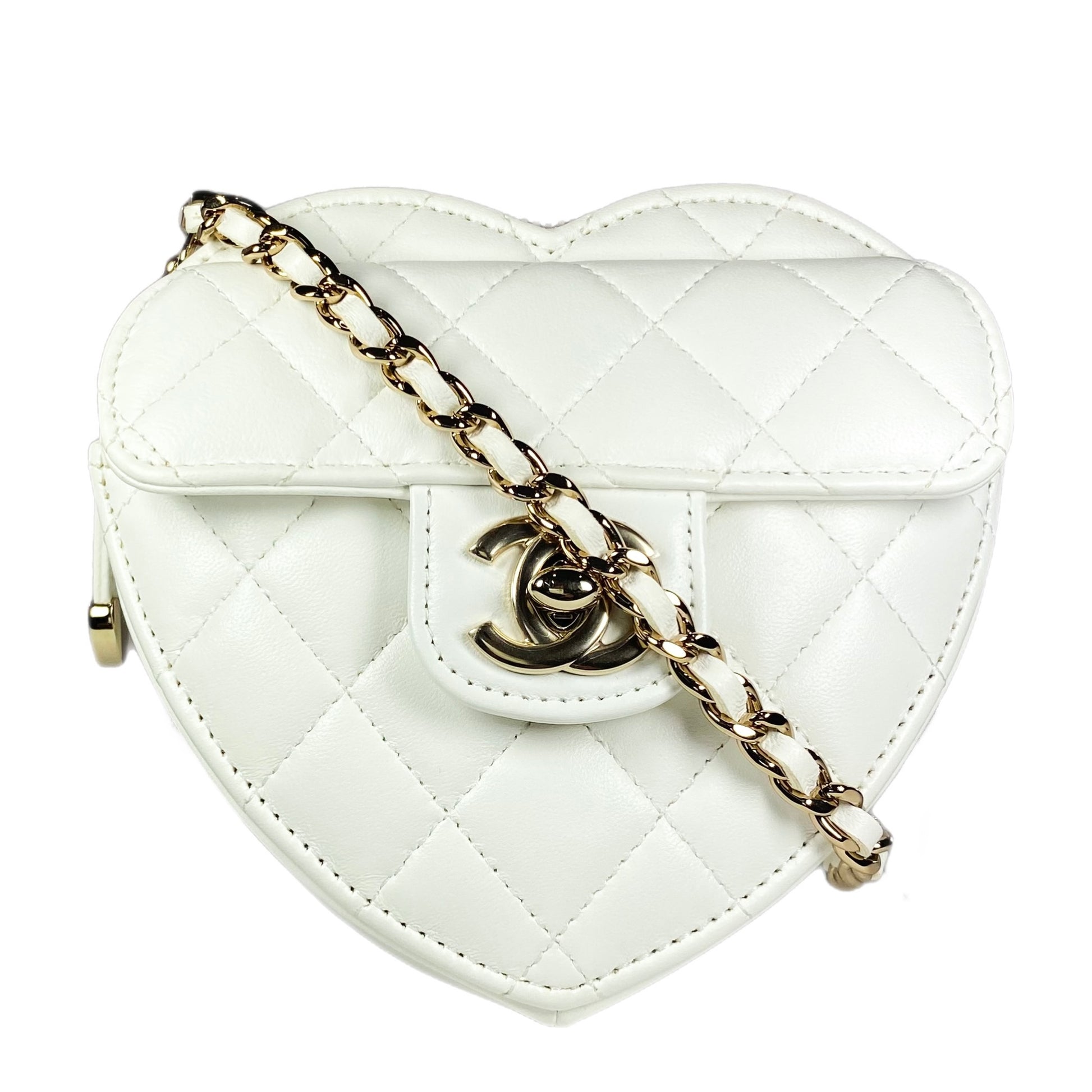Chanel White Lambskin CC In Love Heart Clutch with Chain
