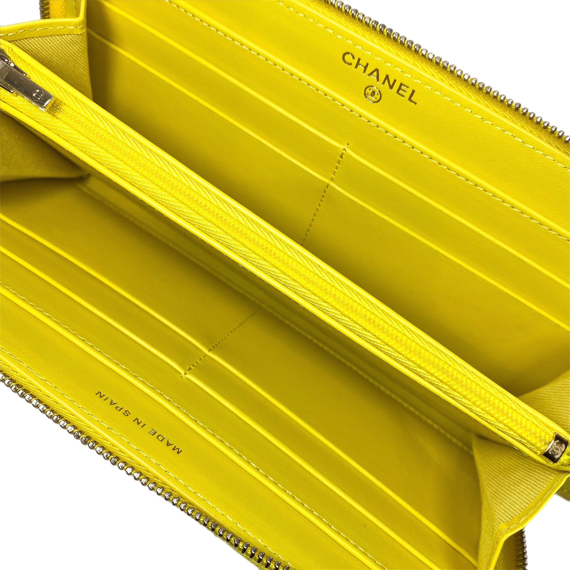 Chanel Yellow Quilted Large Gusset Zip Around Wallet