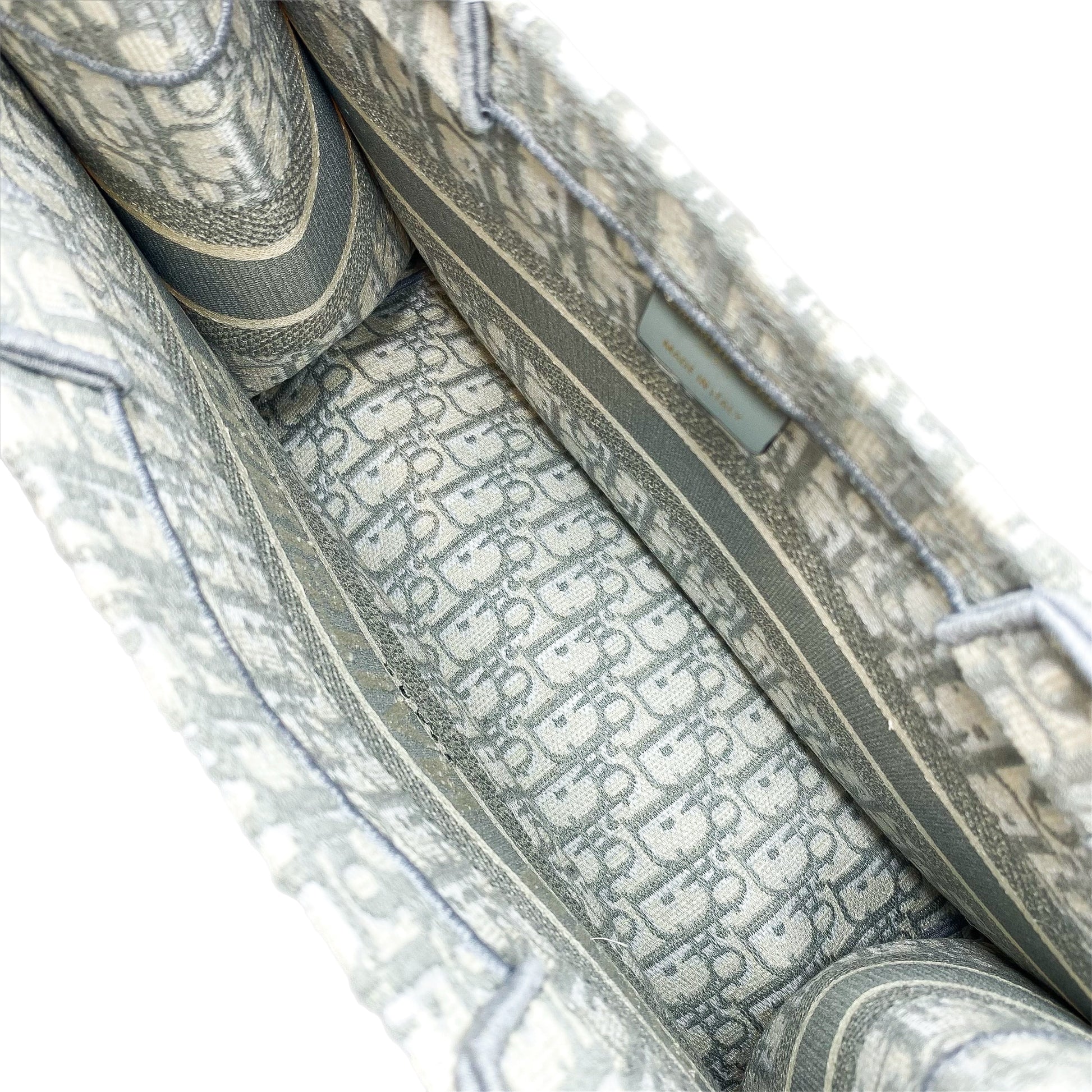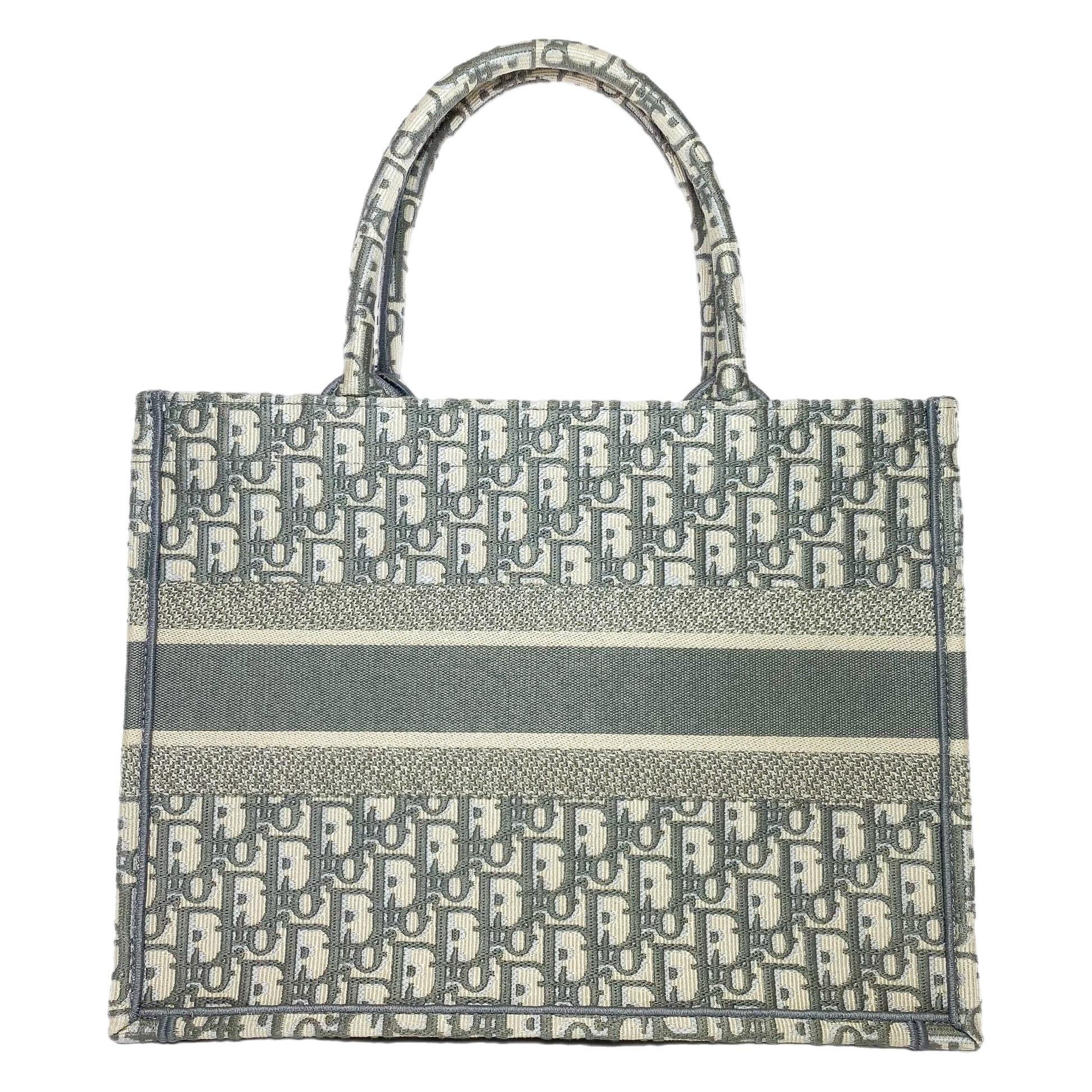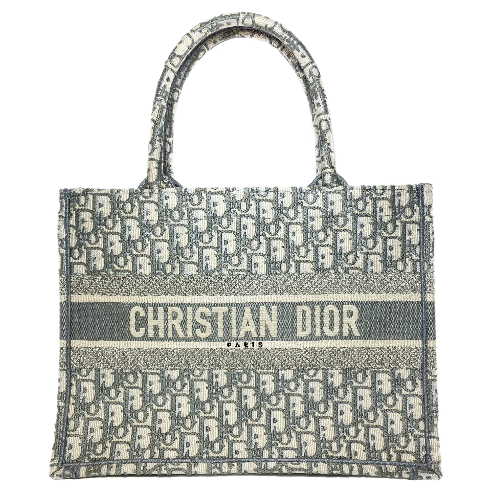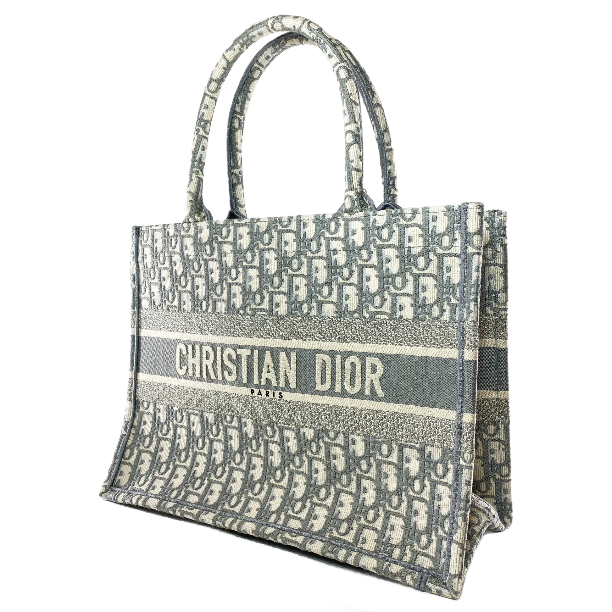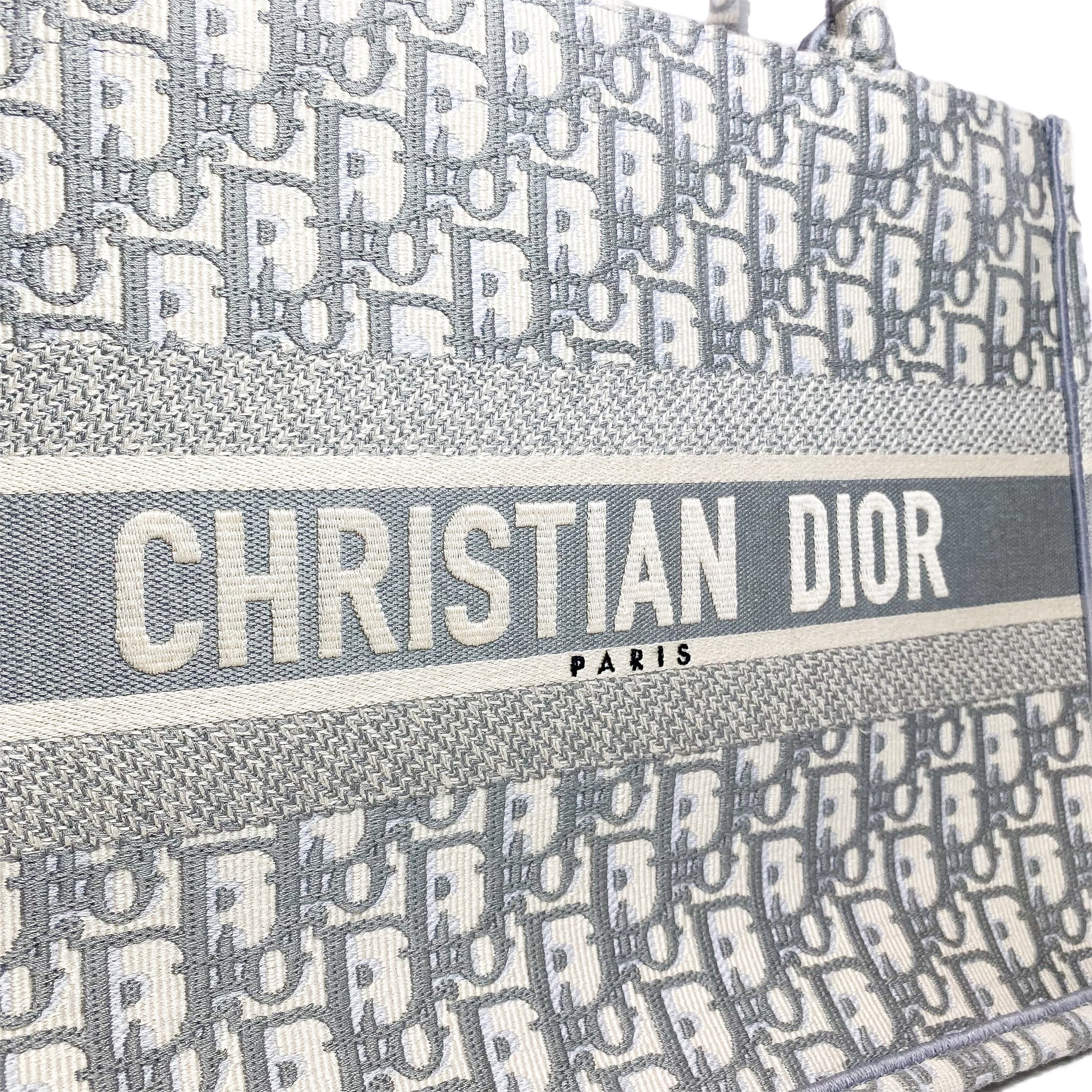 Dior Medium Ecru Gray Oblique Embroidered Book Tote