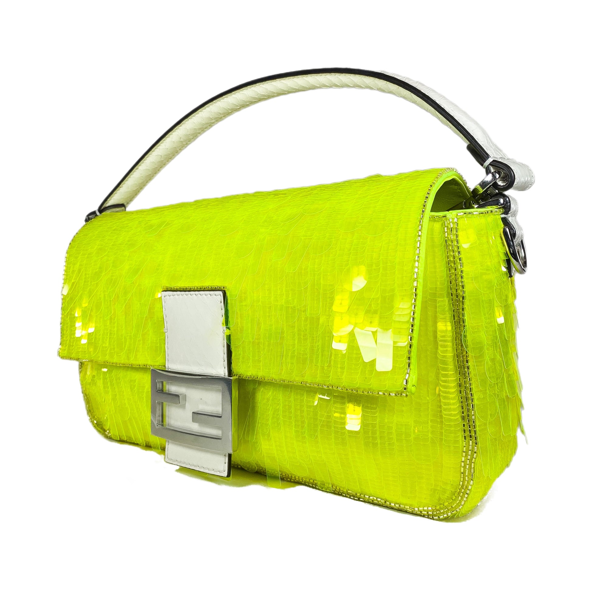 Fendi Elaphe and Neon Yellow Sequin Baguette