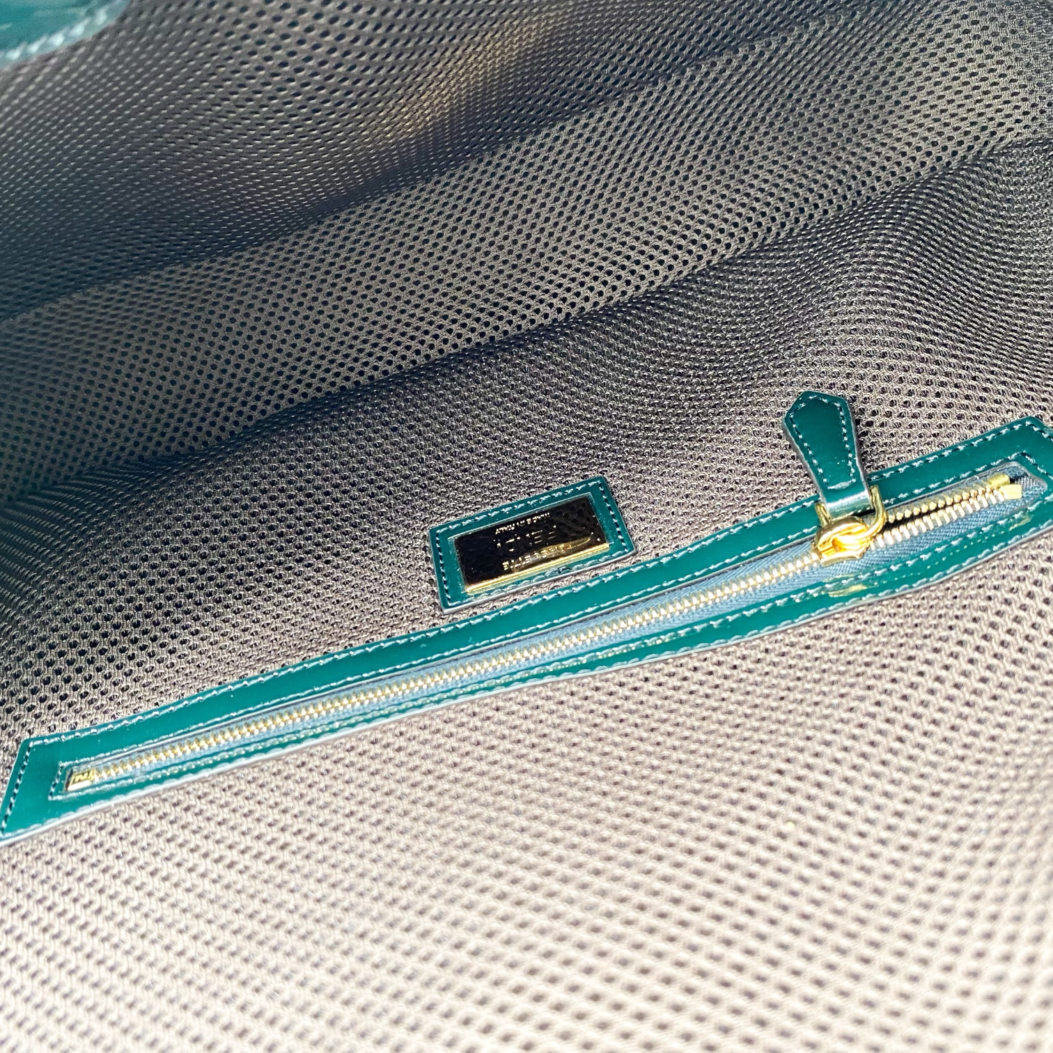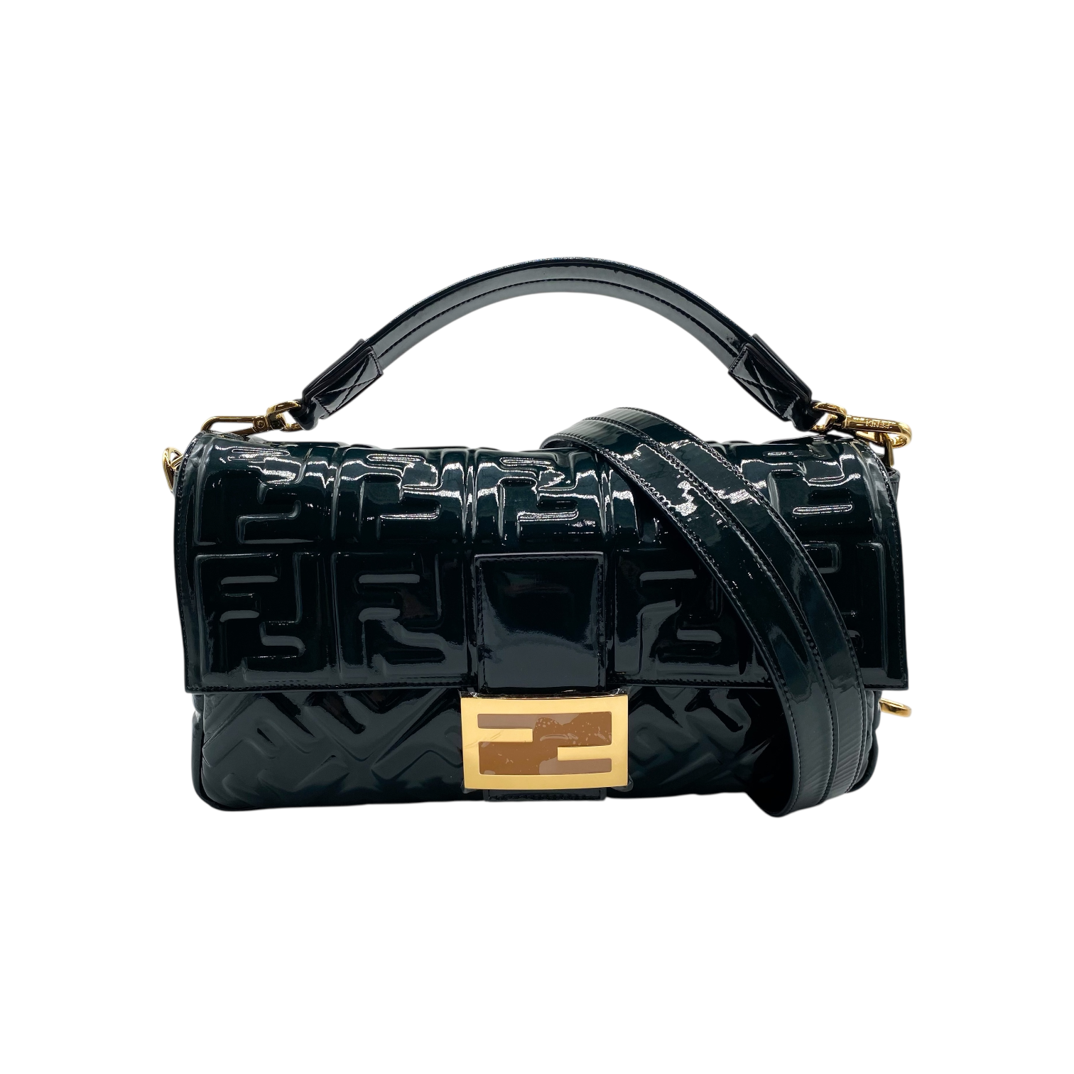 Fendi Green Patent Leather Zucca Embossed Baguette
