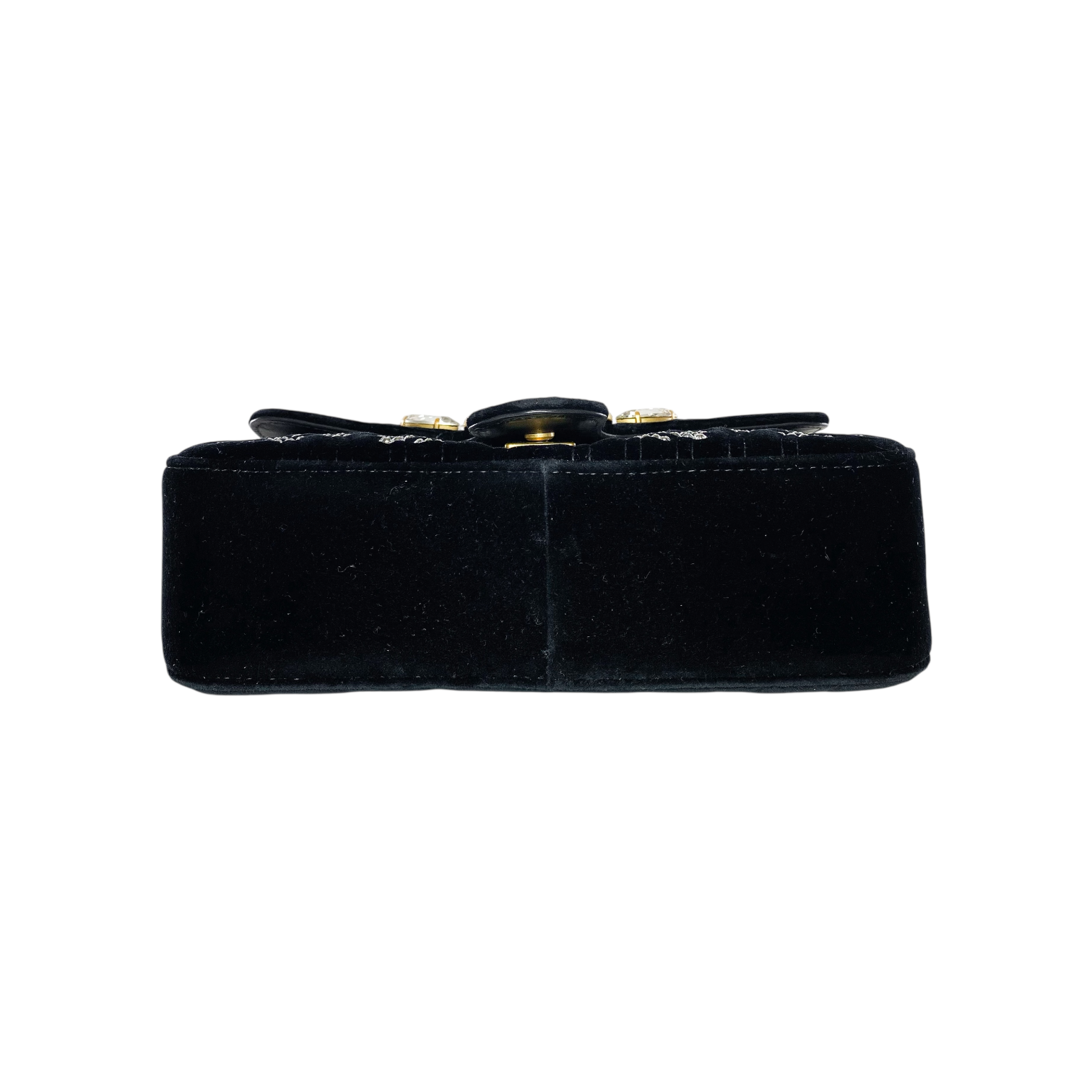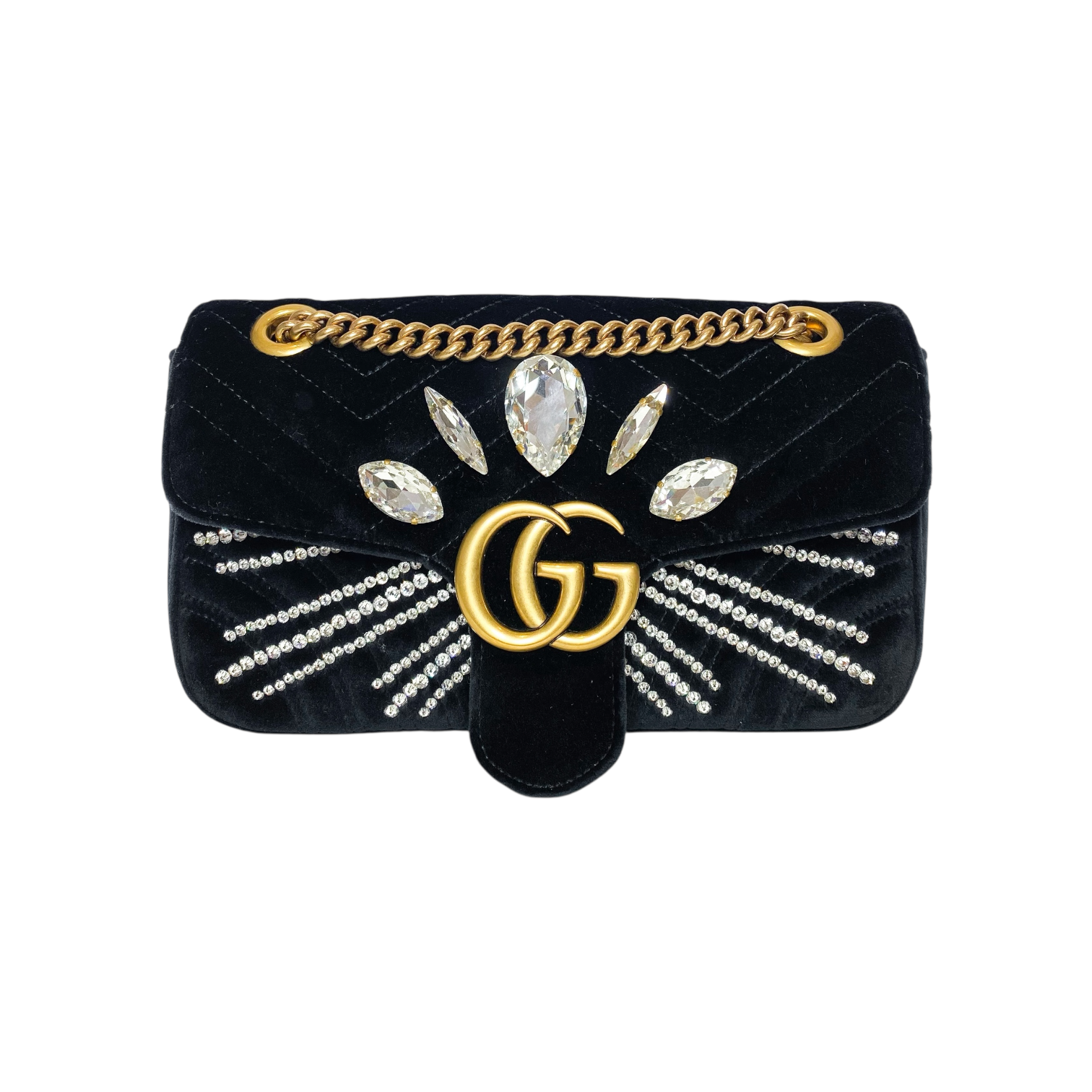 Gucci Black Velvet Marquise Crystal GG Marmont Shoulder Bag