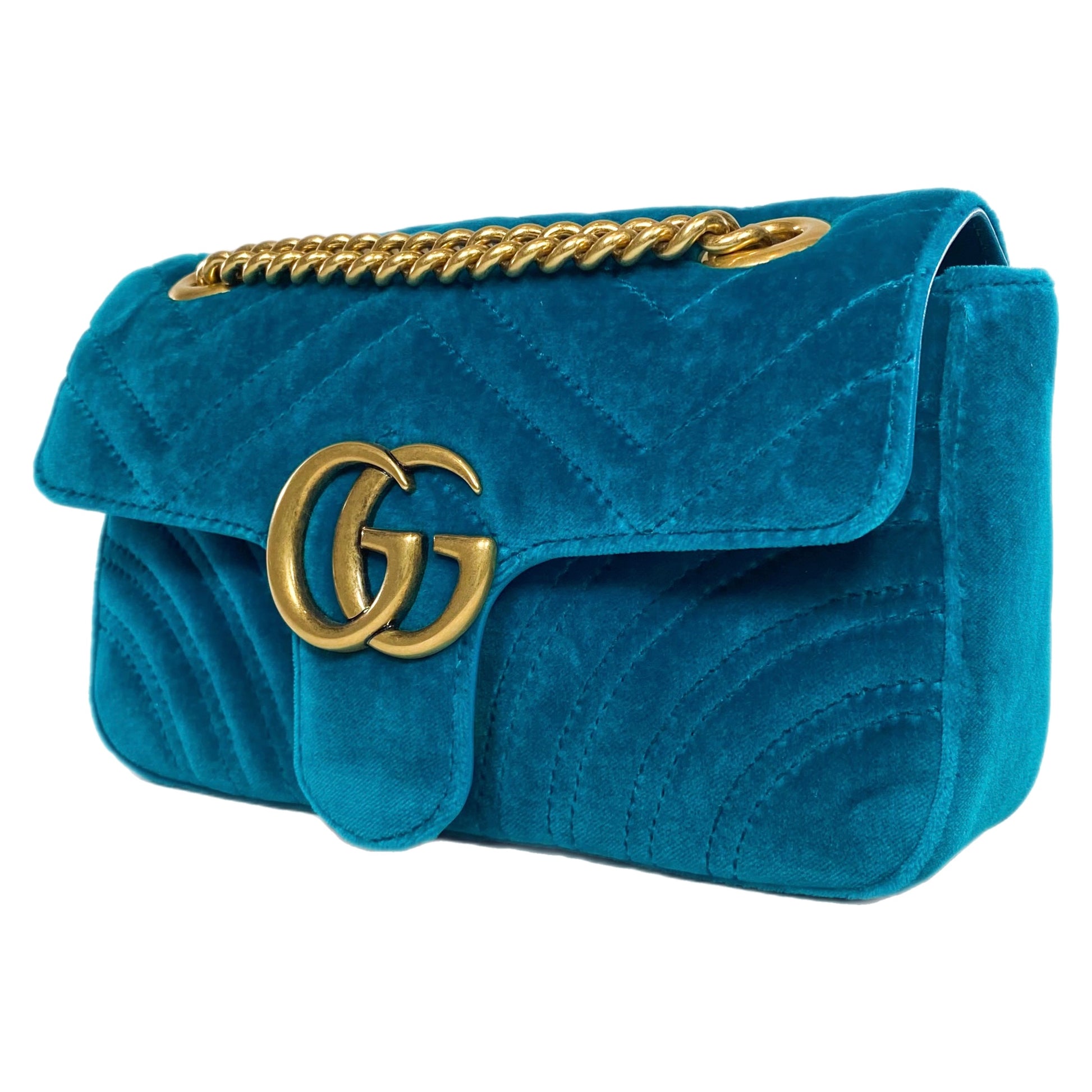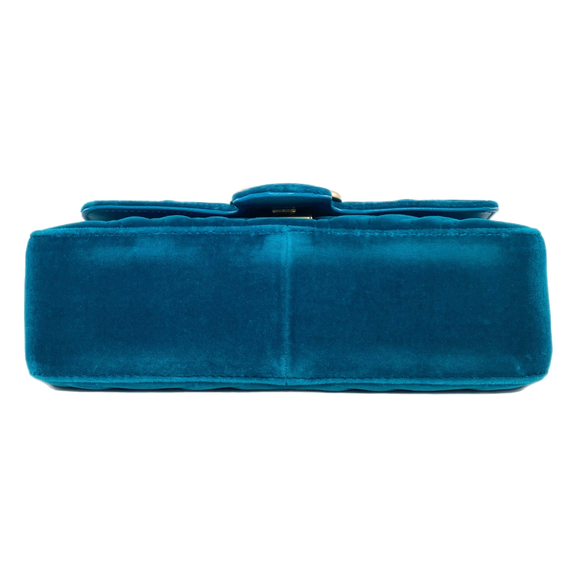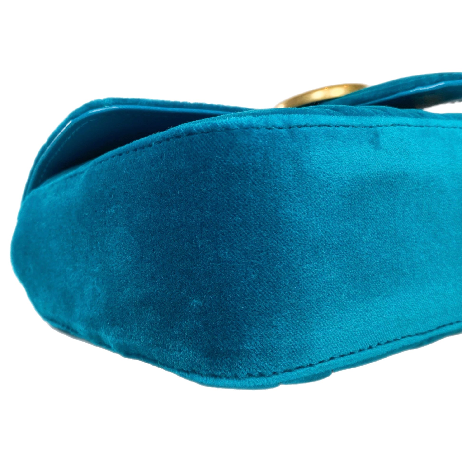 Gucci Petrol Blue Velvet Mini Marmont Pavone Shoulder Bag