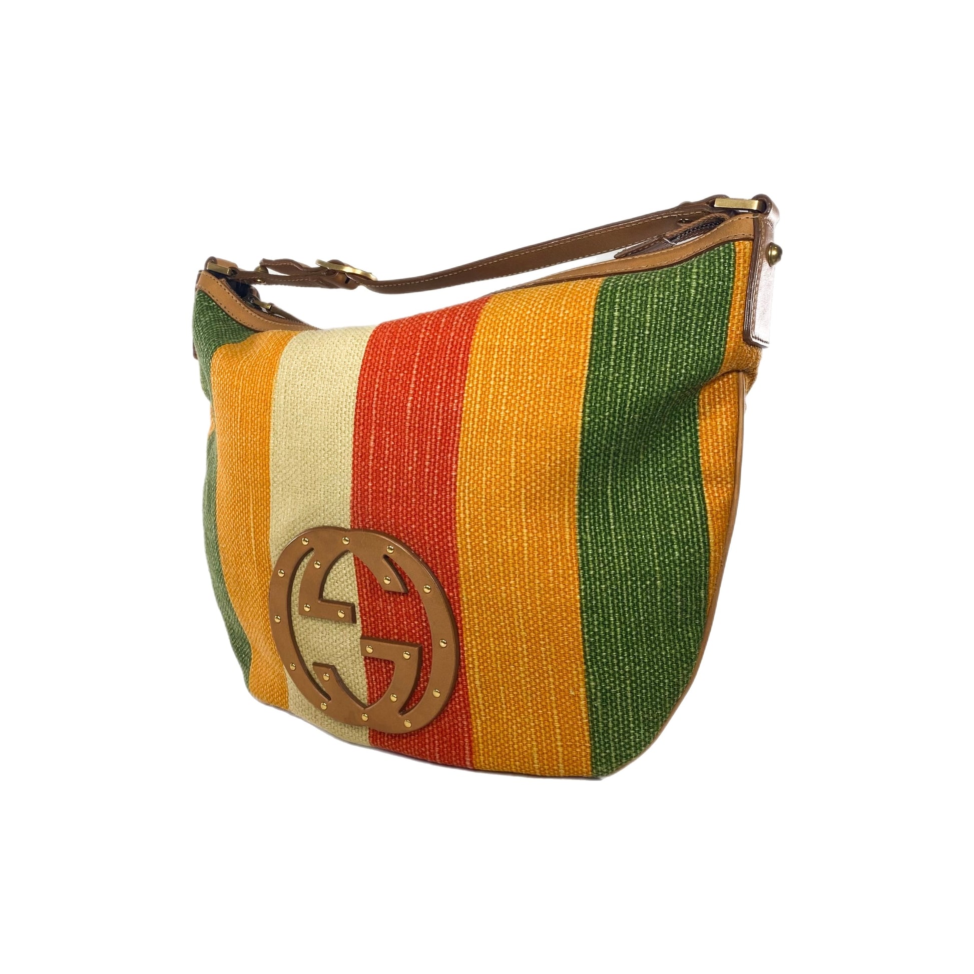 Gucci Striped Multicolor Blondie Raffia Hobo Bag