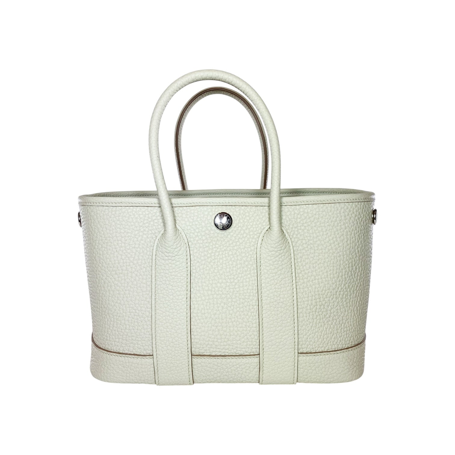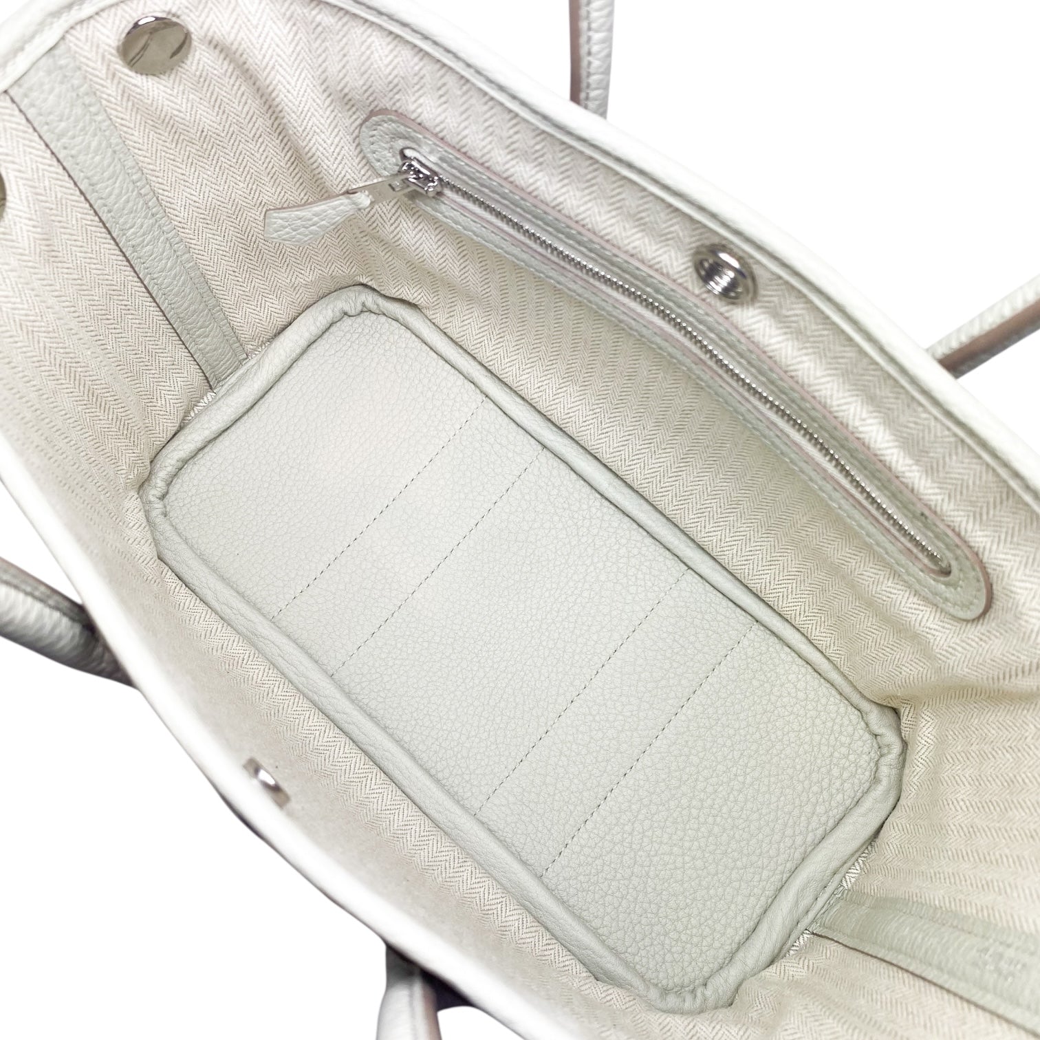 This is an Hermes Beton Neo Garden Party in negonda leather with palladium hardware. This chic handbag features two 3.5-inch handles and a herringbone fabric lined interior with a zipper pocket. This is a stellar everyday handbag!