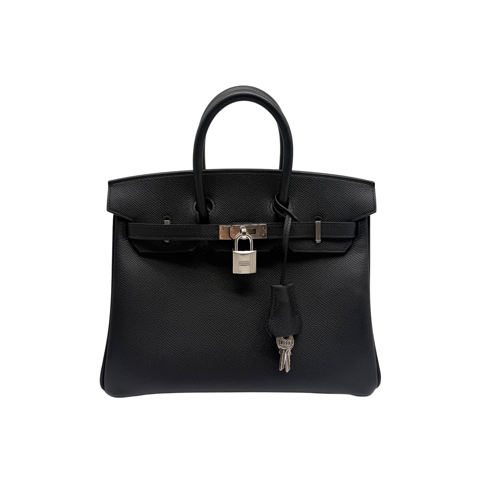 The Hermes Birkin 25 is crafted in structured Epsom leather, and finished with crisp palladium hardware. Compact yet iconic, it embodies effortless elegance with a polished edge.