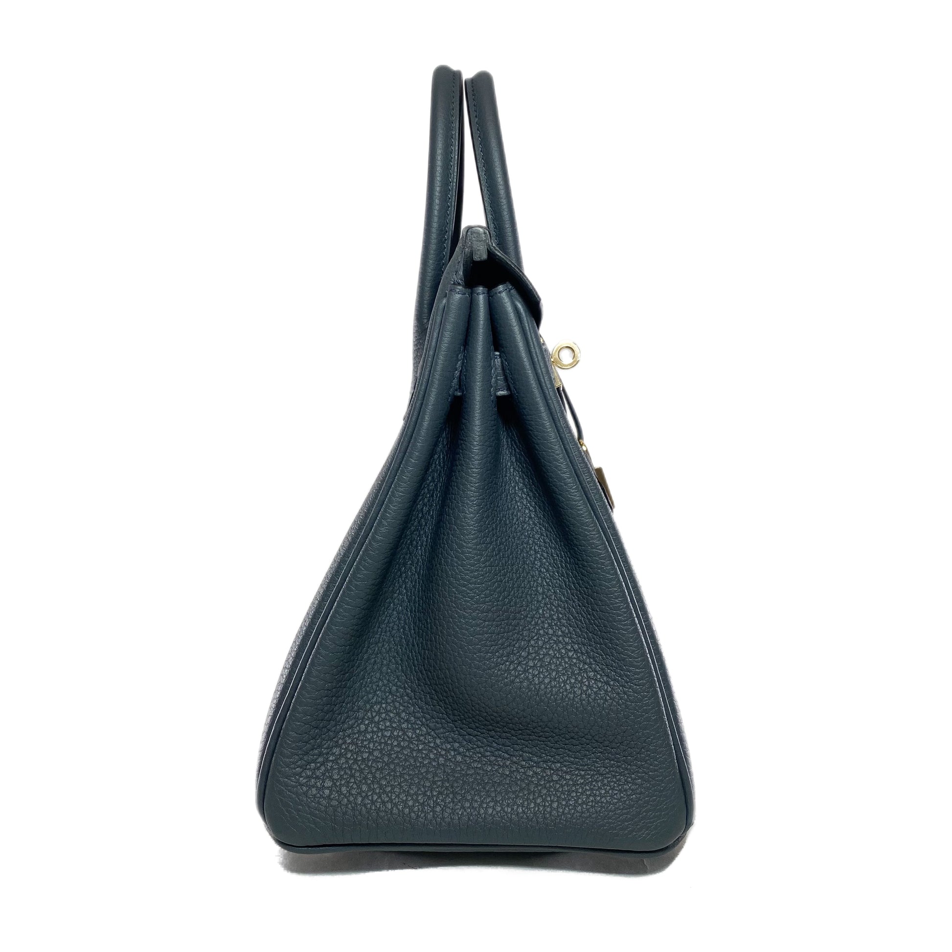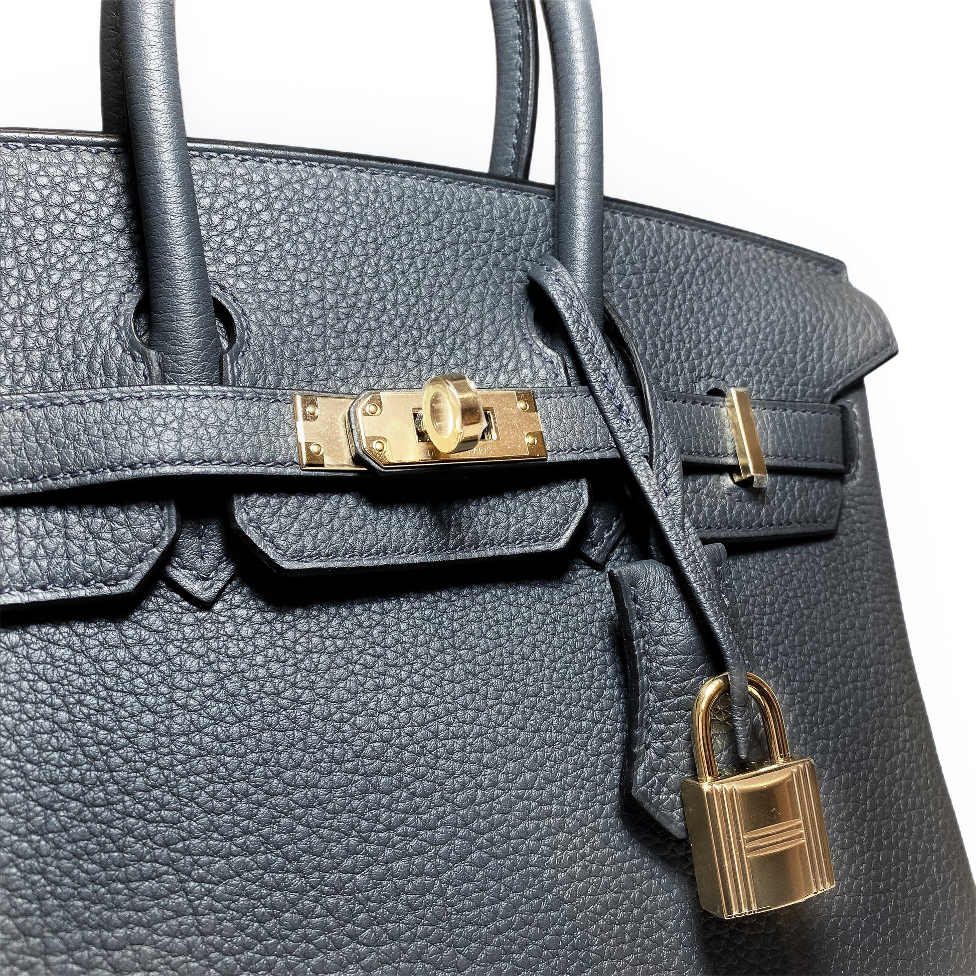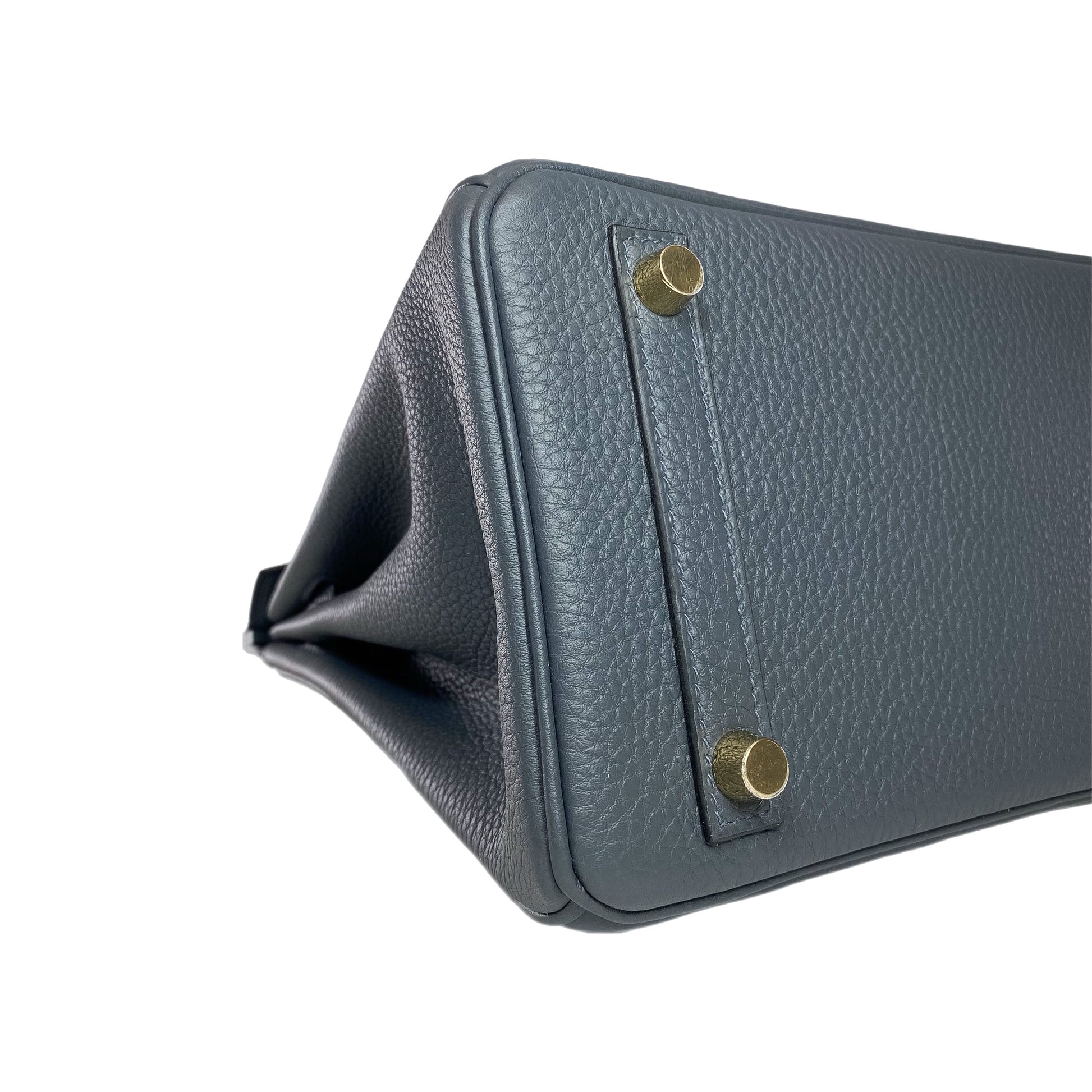 This is an Hermes Gris Misty Birkin 25 in togo leather with Permabrass hardware. This stunning Birkin 25 features two 2.5-inch handles, a lock and key, and the signature strap and turn lock closure. The front flap opens to a Gris Misty leather lined interior that features a patch pocket and a zipper pocket. This is a stellar handbag for any occasion!