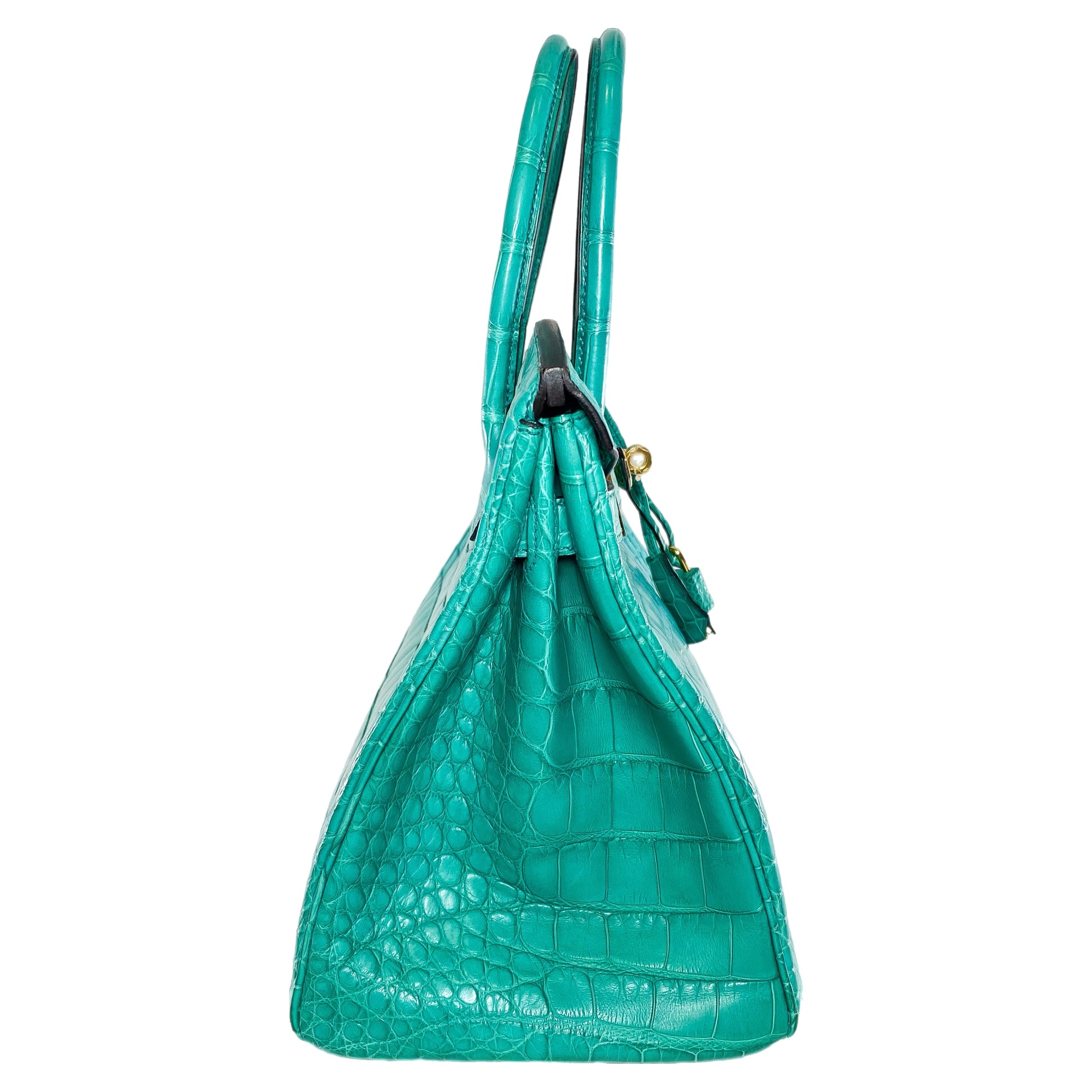 Hermes Birkin 30 Blue Paon Matte Alligator Gold Hardware