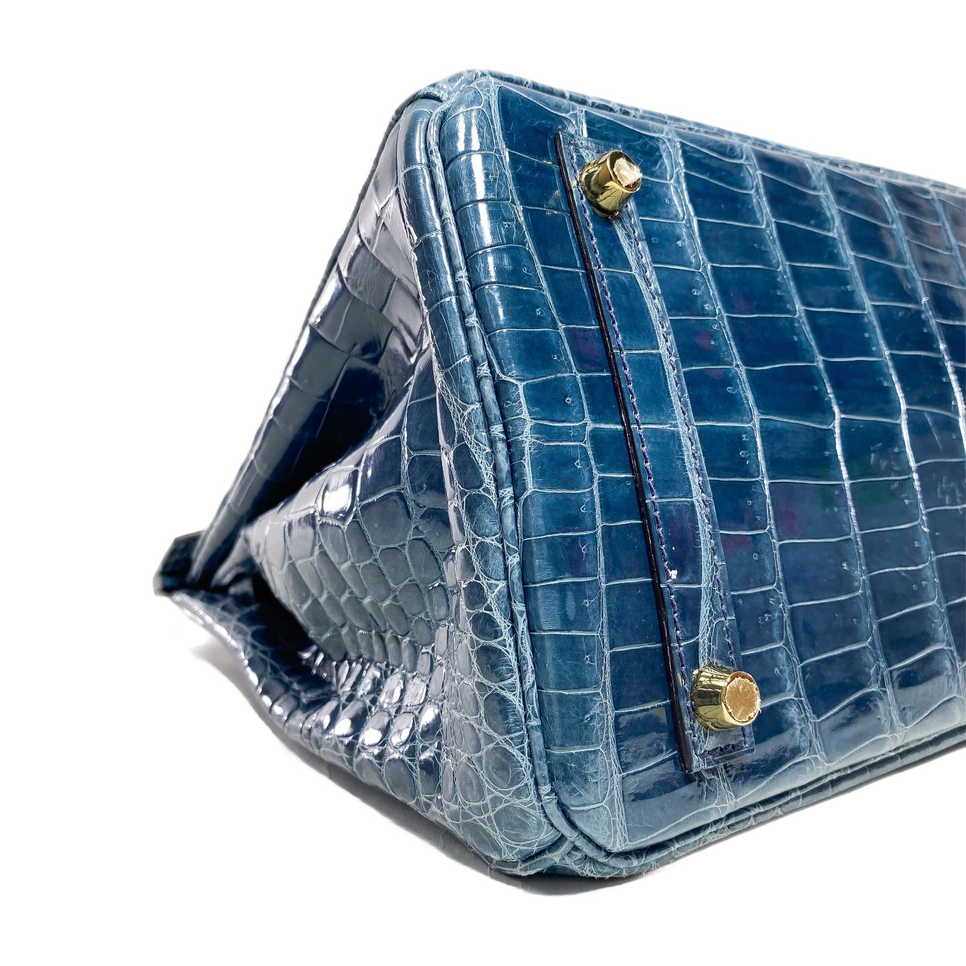 Hermes Birkin 30 Blue Tempete Porosus Crocodile Gold Hardware