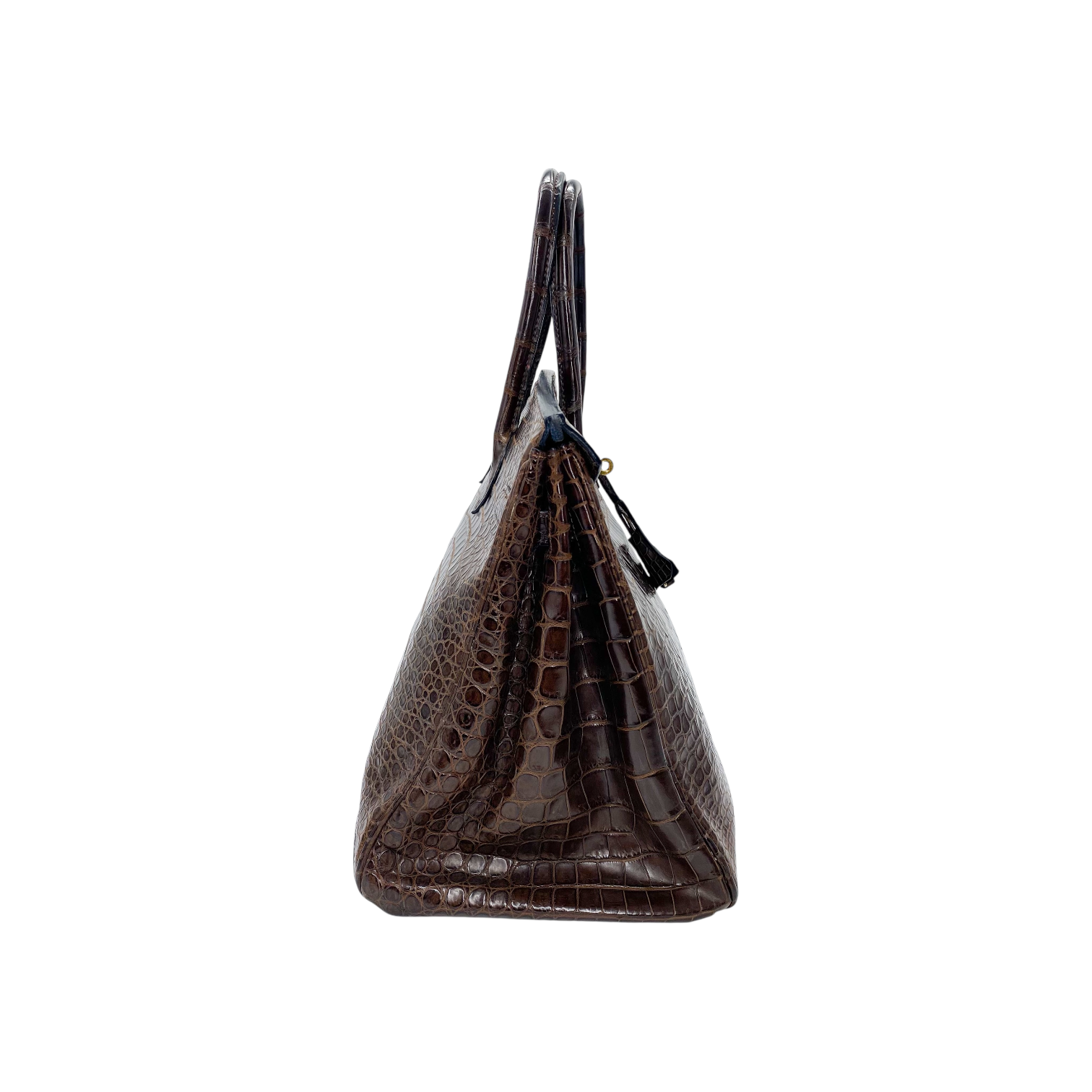 Hermes Birkin 35 Chocolate Porosus Crocodile Gold Hardware