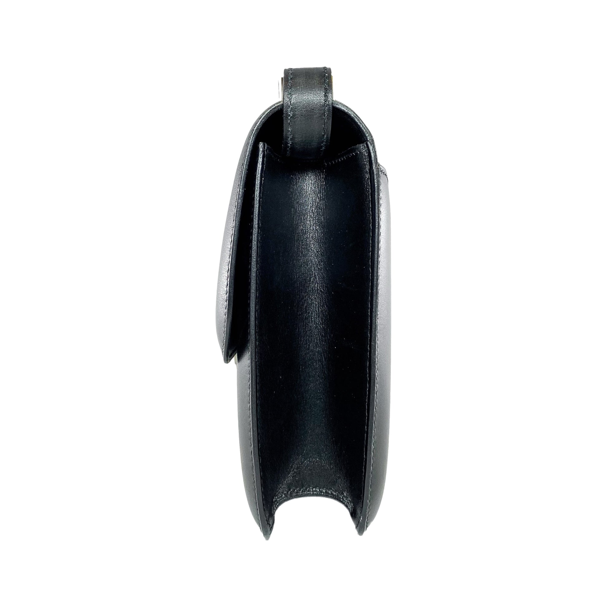 This is an Hermes Black Constance 23 in box leather with brushed palladium hardware. This stylish Constance features a 14.5-inch strap, a rear exterior pocket, and an “H” clasp closure. The front flap opens to a black leather lined interior that features a patch pocket and a zipper pocket. This is a wonderful everyday handbag!