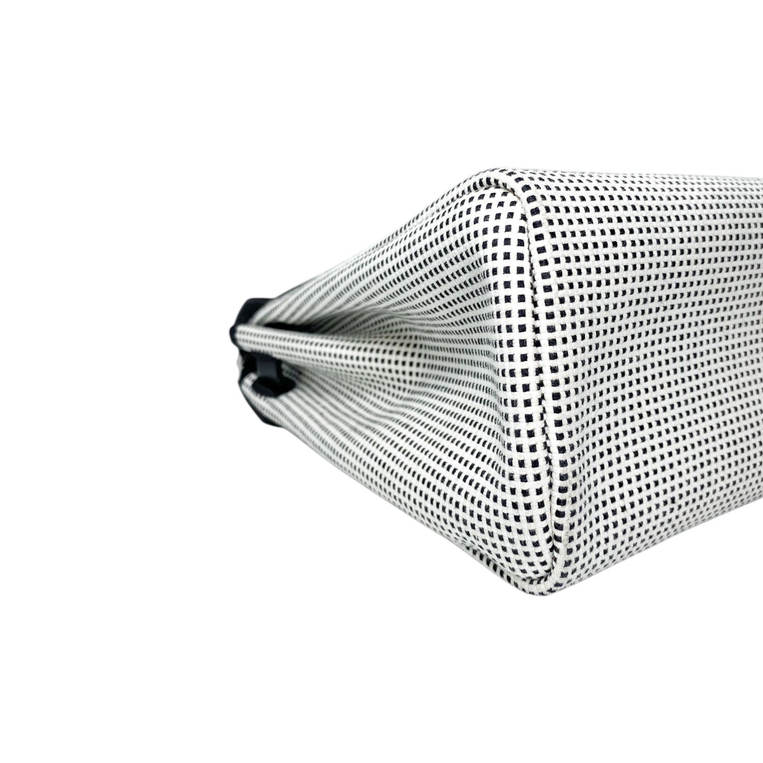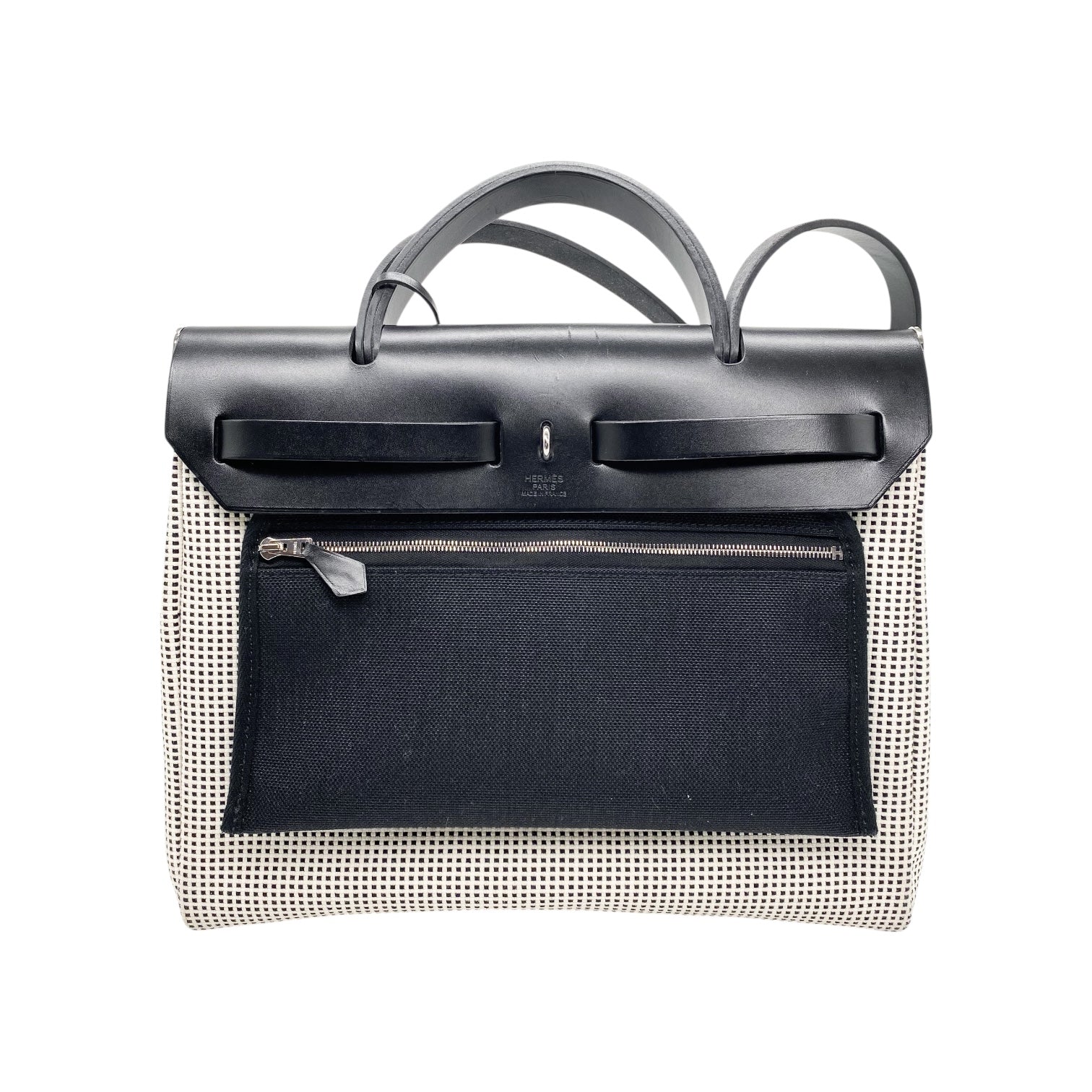 This is an Hermes Black and White Quadrille Viking Herbag PM 31 in toile and leather with palladium hardware. This stylish Herbag features a top handle, a leather strap, a vache leather top crest, a rear canvas zipper pouch, and a strap closure. The front flap opens to a canvas lined interior that features a zipper pouch. This is a wonderful Herbag for any occasion!
