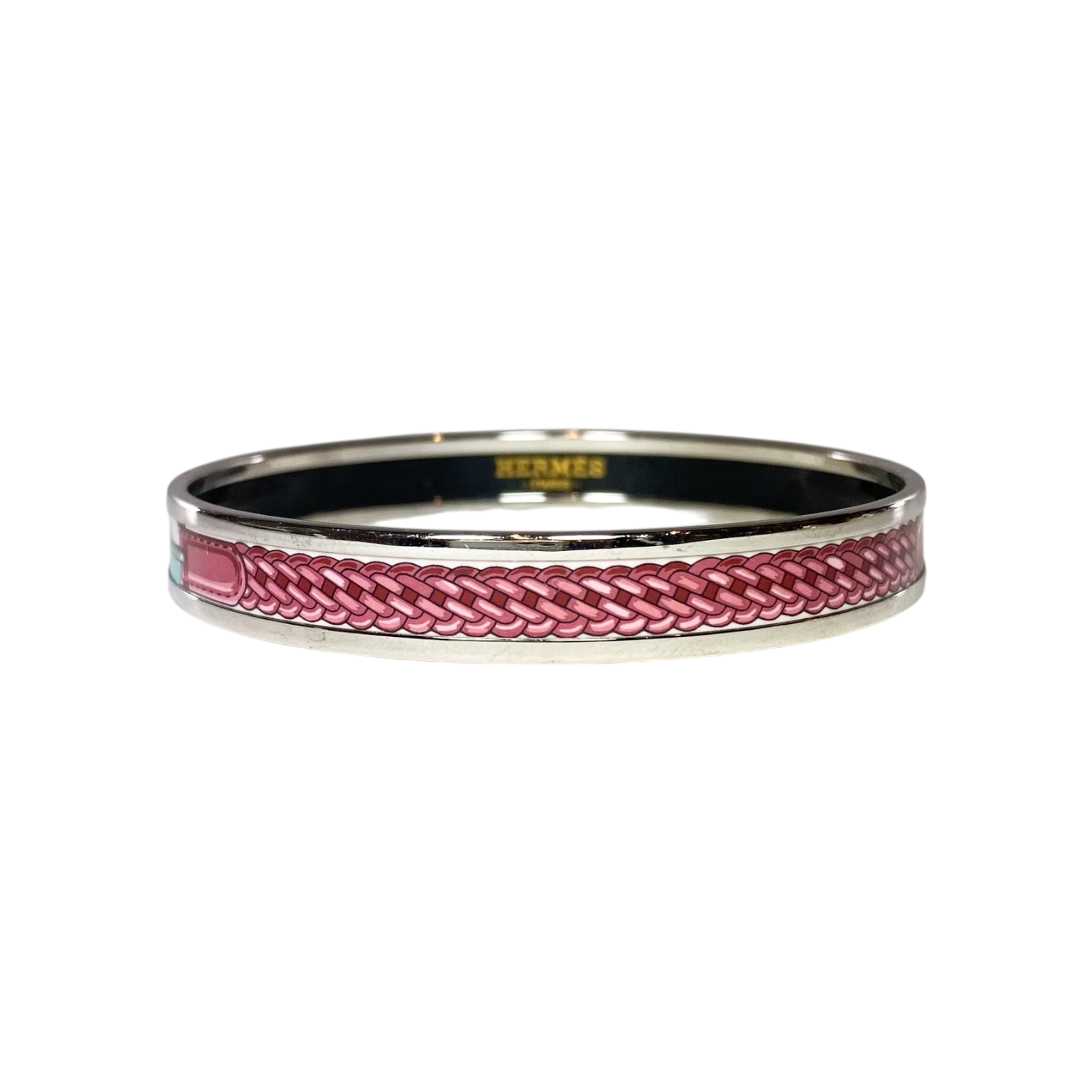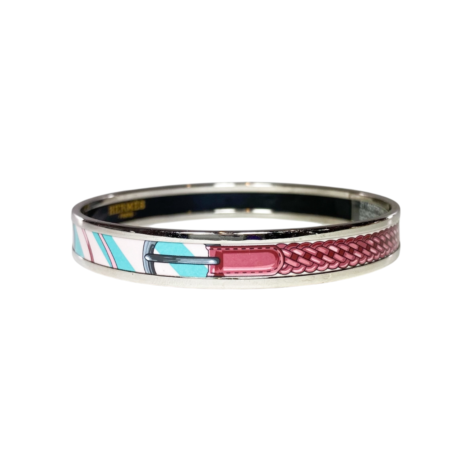 This is an Hermes Coaching Rose Couture Narrow Bracelet in palladium hardware. This stylish bracelet features a decorative multicolor design. This is an amazing bracelet for many occasions!