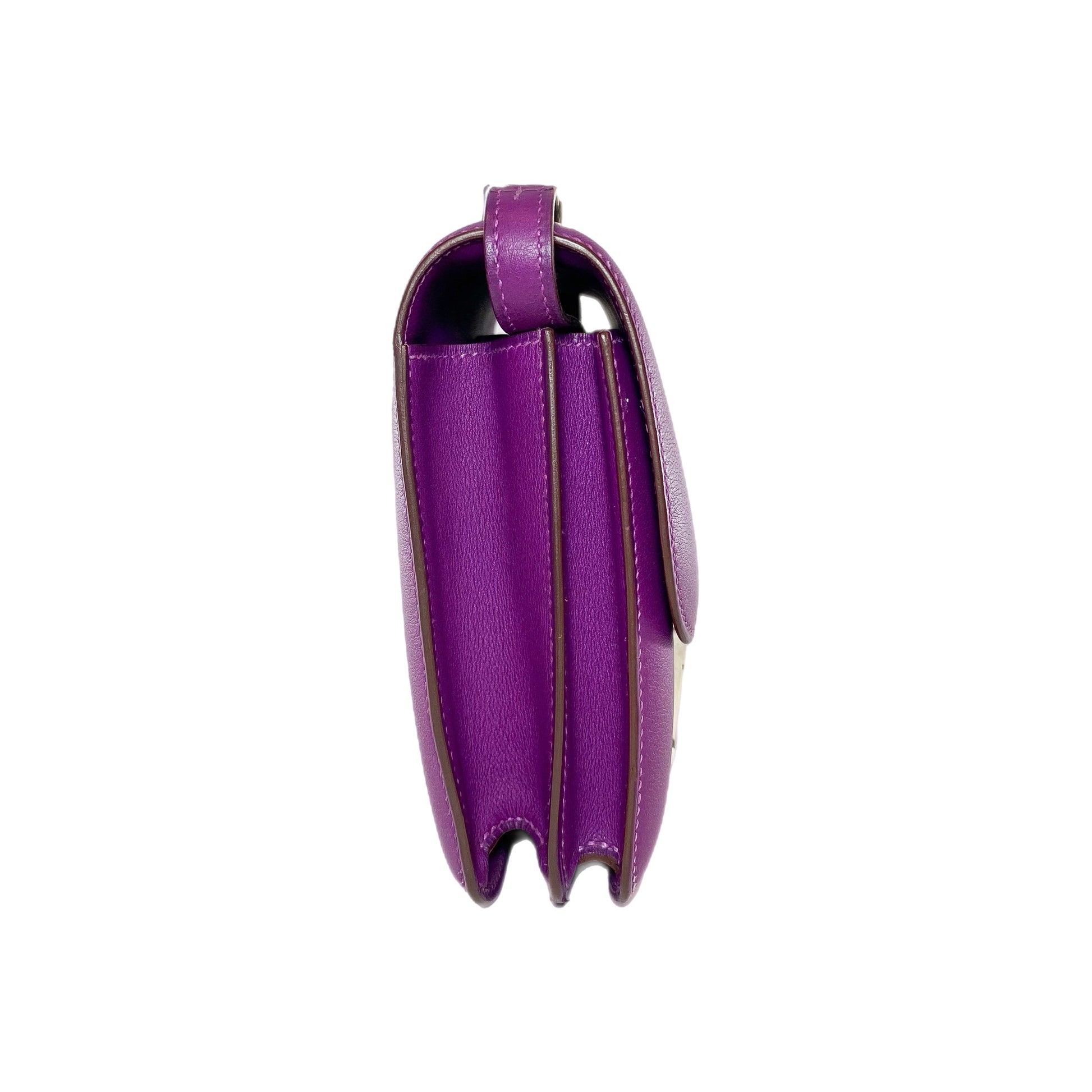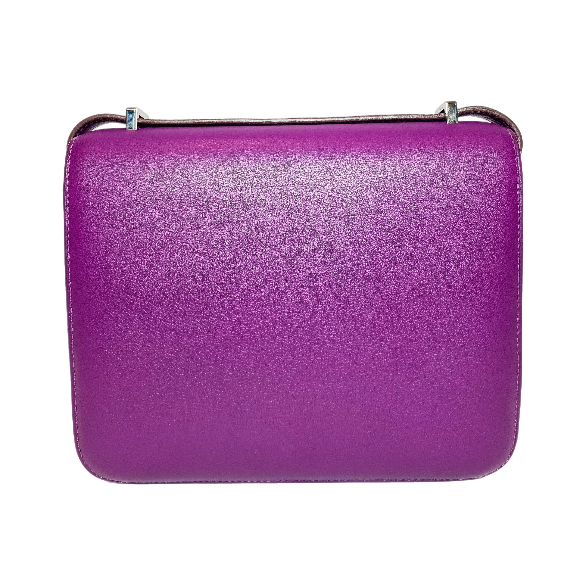 This is an Hermes Anemone Constance 18 in swift leather with palladium hardware. This stylish Constance features a 20-inch strap and a palladium “H” clasp closure. The front flap opens to a partitioned Anemone leather lined interior that features two patch pockets. This is a stellar bag for many occasions!