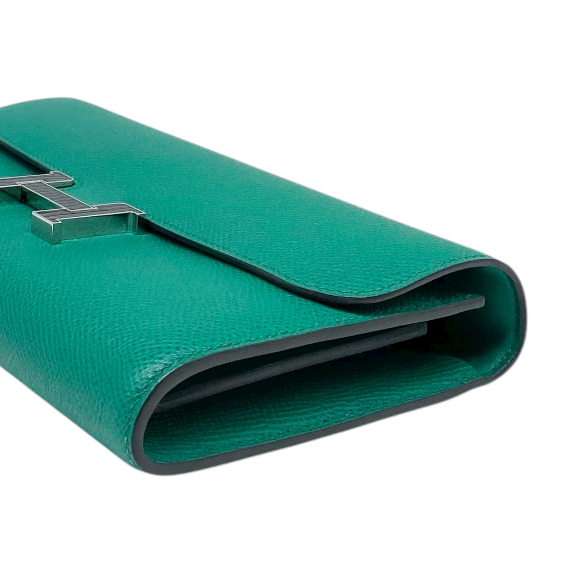 This is an Hermes Vert Jade and Vert Cypress Constance To Go in epsom leather with palladium hardware. This stylish Constance To Go features a strap, a rear pocket, and a lizard “H” press-lock closure. The front flap opens to a partitioned Vert Jade leather interior that features card slots, patch pockets, and a zipper pocket. This To Go is a stellar accessory for any occasion!