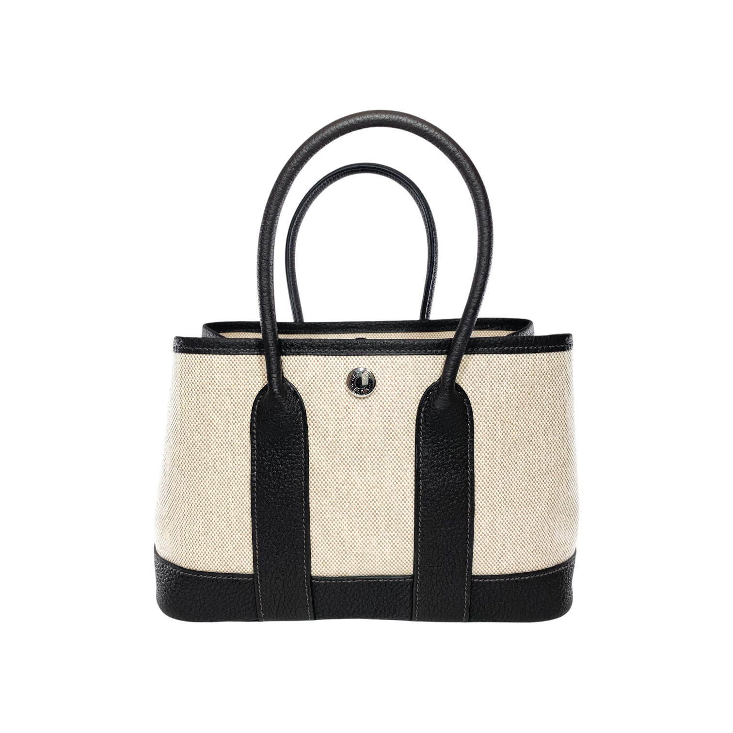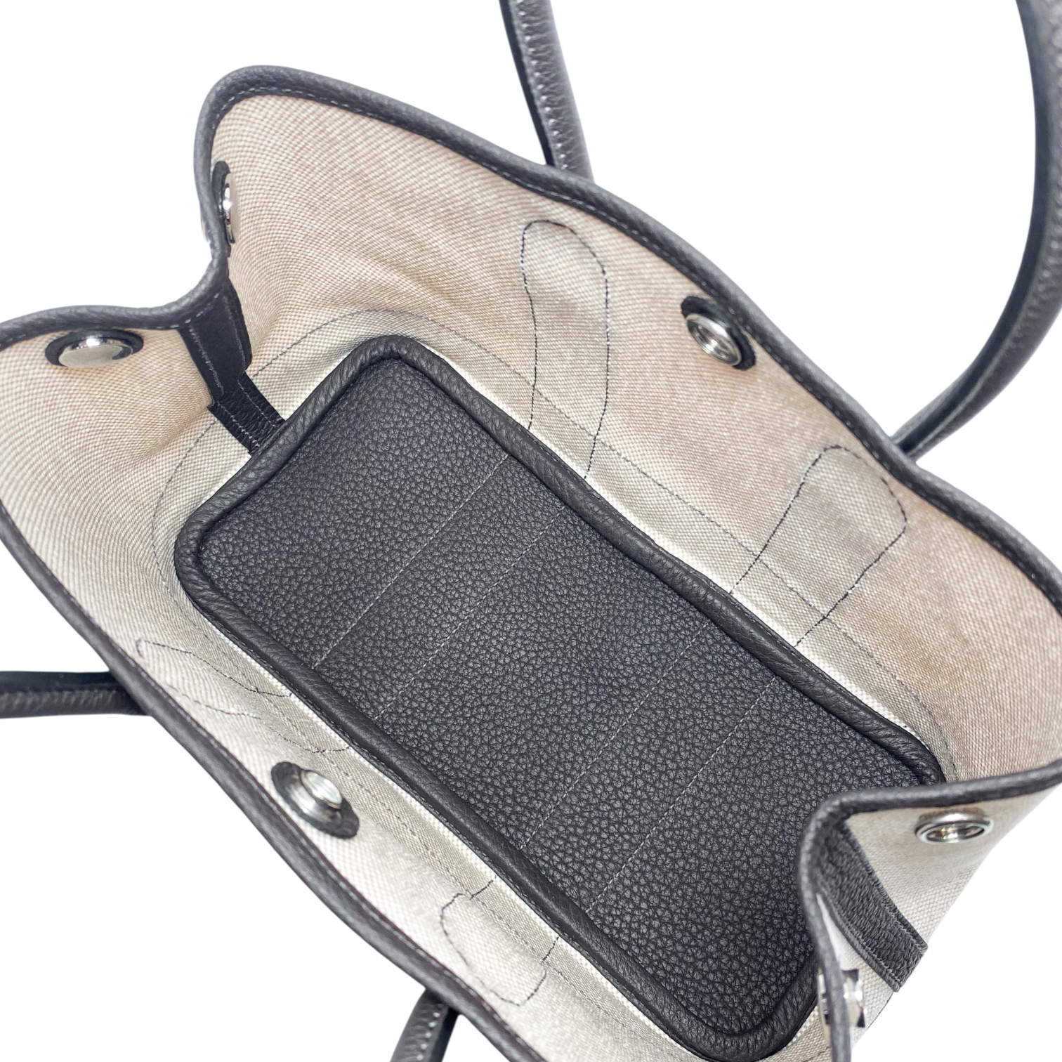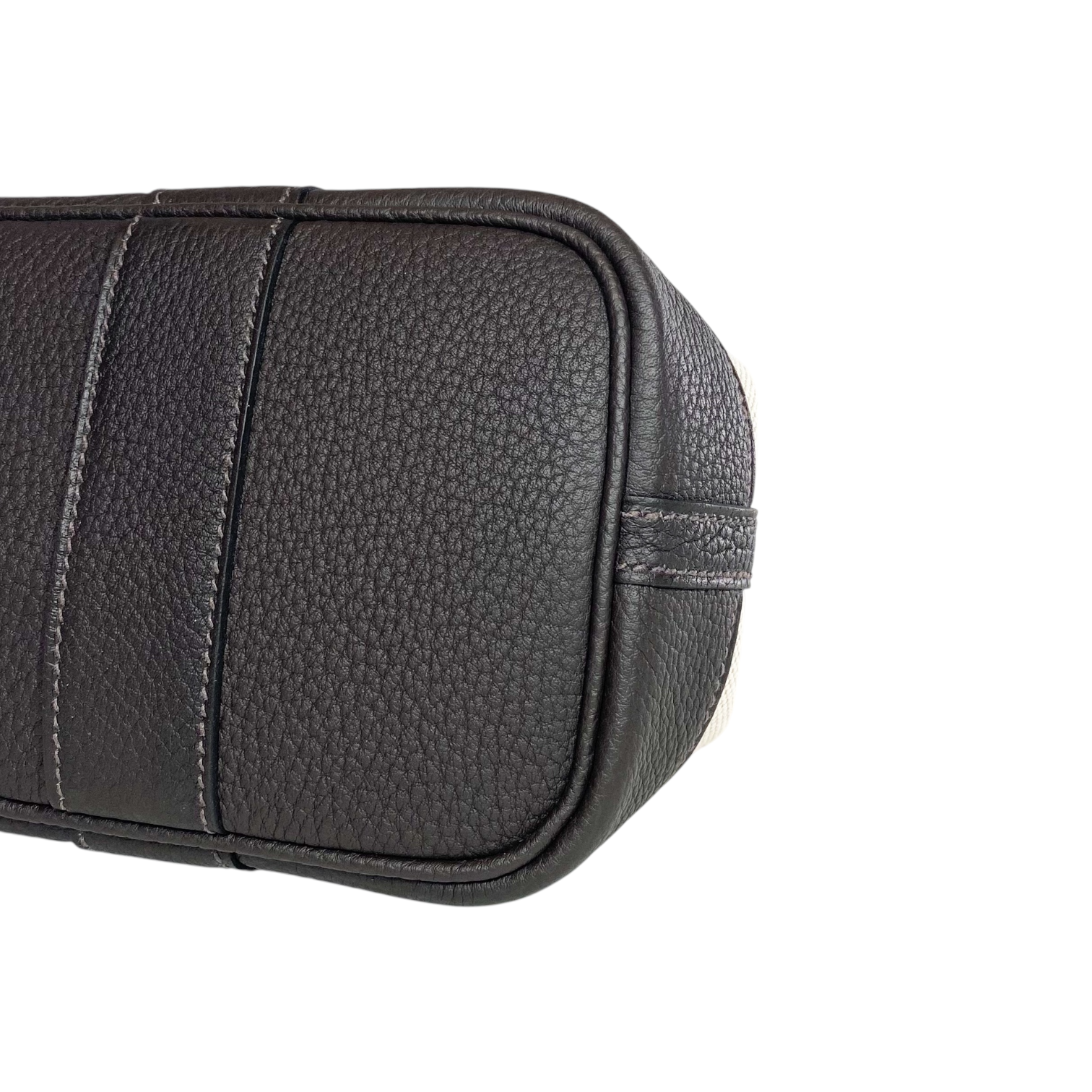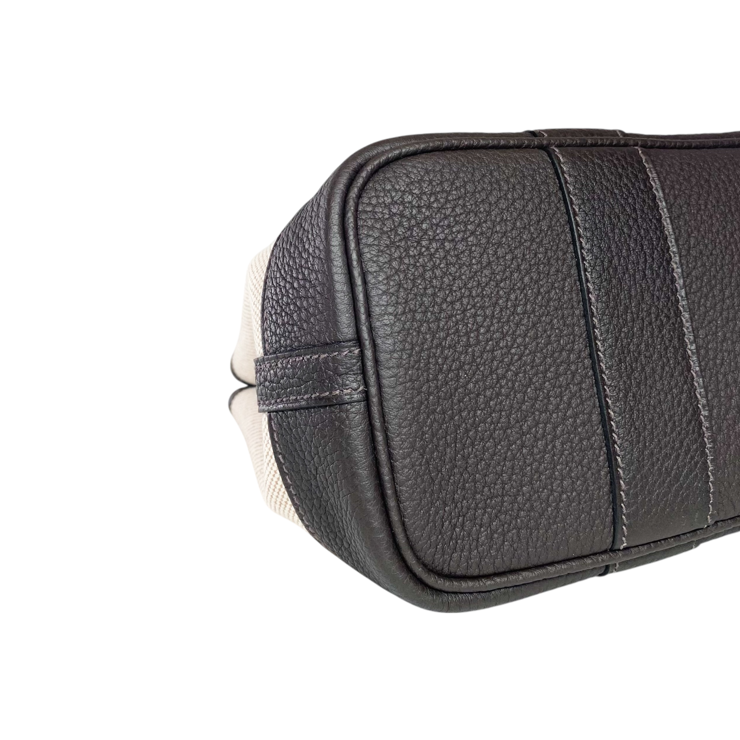 This is an Hermes Ecru, Beige, and Ebene Neo Garden Party 23 in H Viking and negonda leather with palladium hardware. This chic handbag features two 3.5-inch handles and a canvas lined interior. This is a stellar everyday handbag!