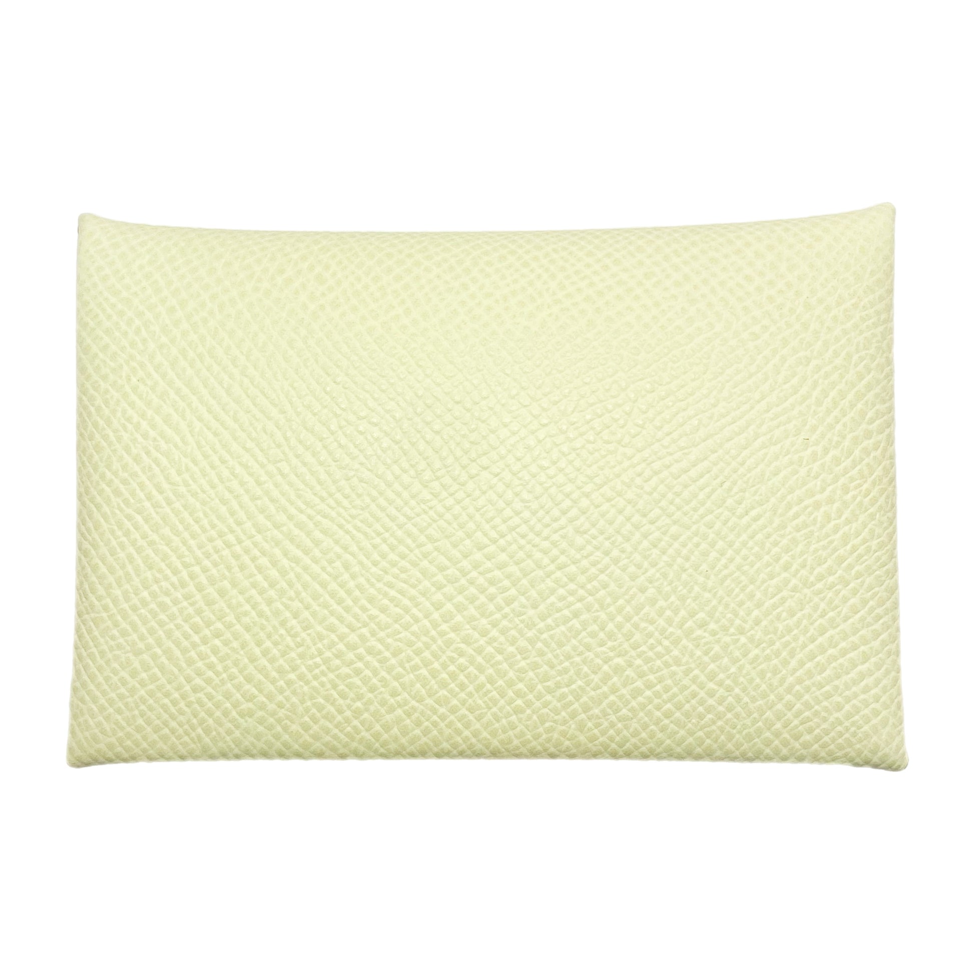 This is an Hermes Jaune Milton Calvi Card Case in epsom leather with palladium hardware. This chic Calvi features a snap closure that opens to two pockets on either side. This is a wonderful accessory for everyday use!