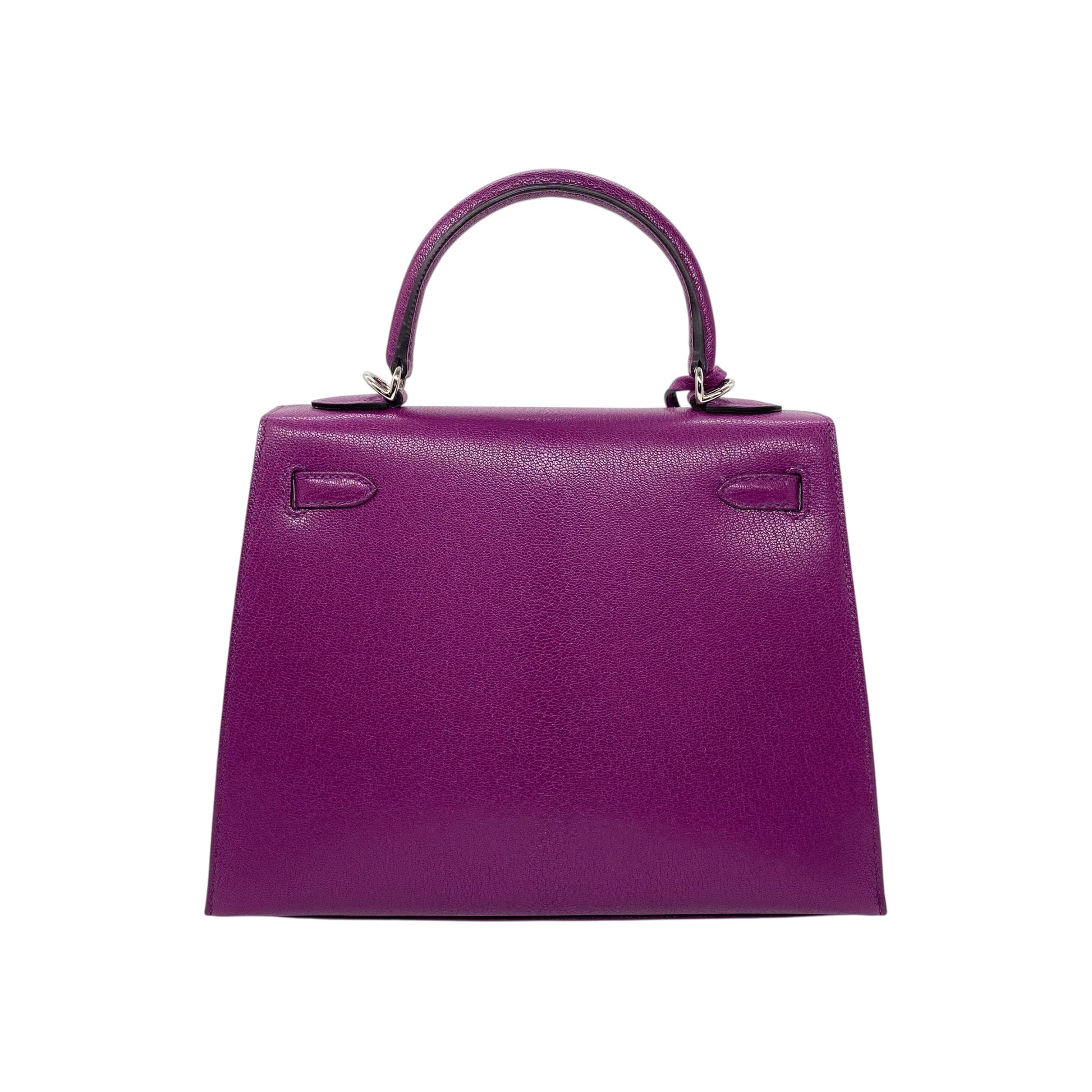 Hermes Kelly 25 Anemone Chevre Leather Palladium Hardware