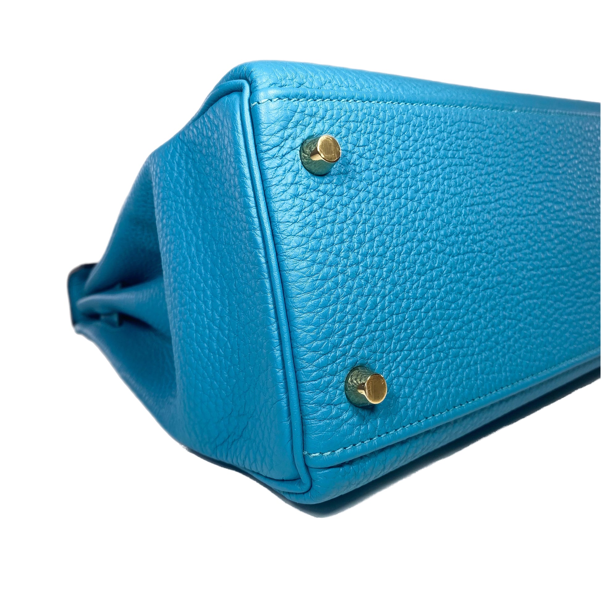 Hermes Kelly 28 Turquoise Togo Gold Hardware