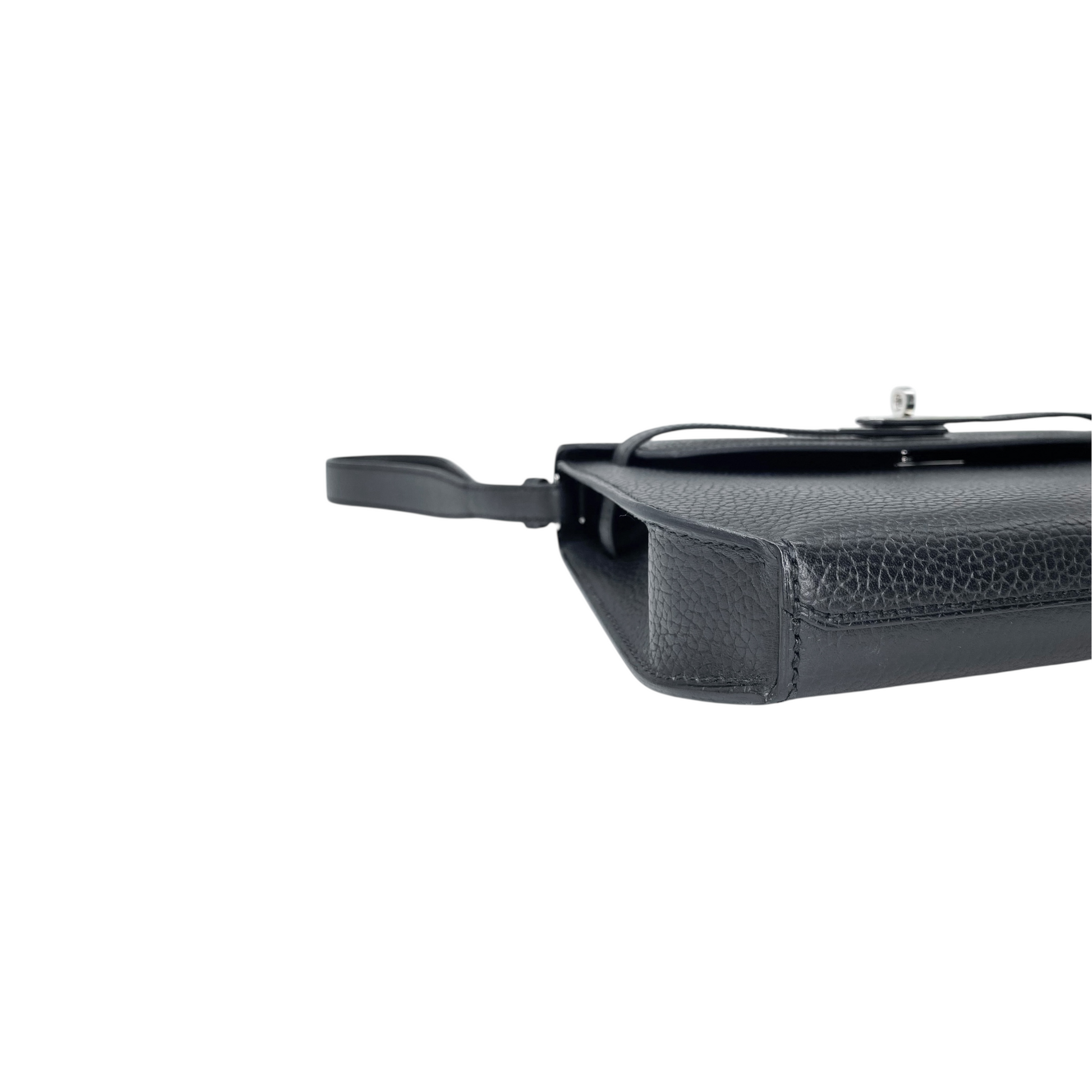 This is an Hermes Black Kelly Despeches in togo leather with palladium hardware. This chic handbag features a detachable strap and a turn lock closure. The front flap opens to a black leather lined interior. This is a stellar handbag for any occasion!