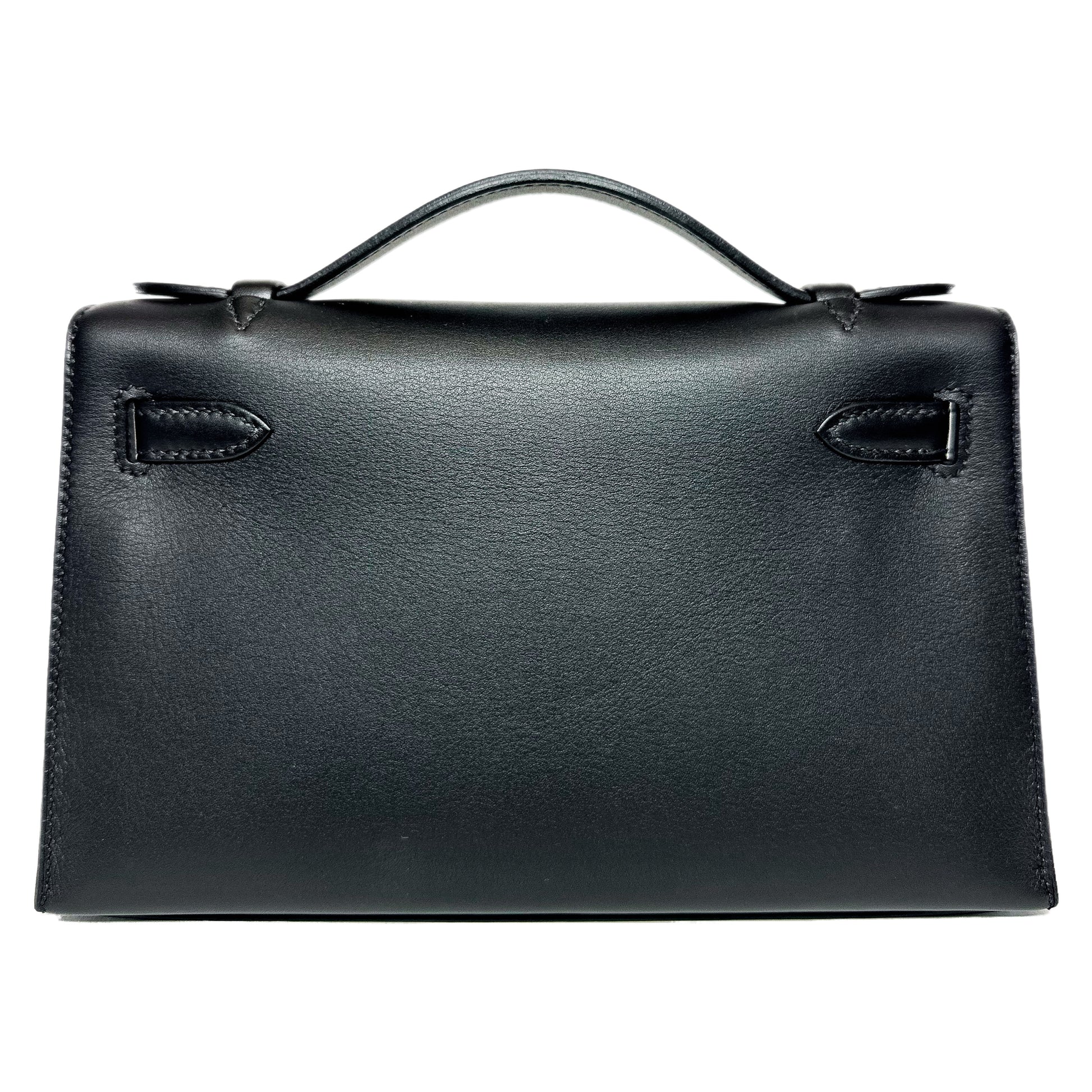 Hermes Kelly Pochette Black Swift Palladium Hardware