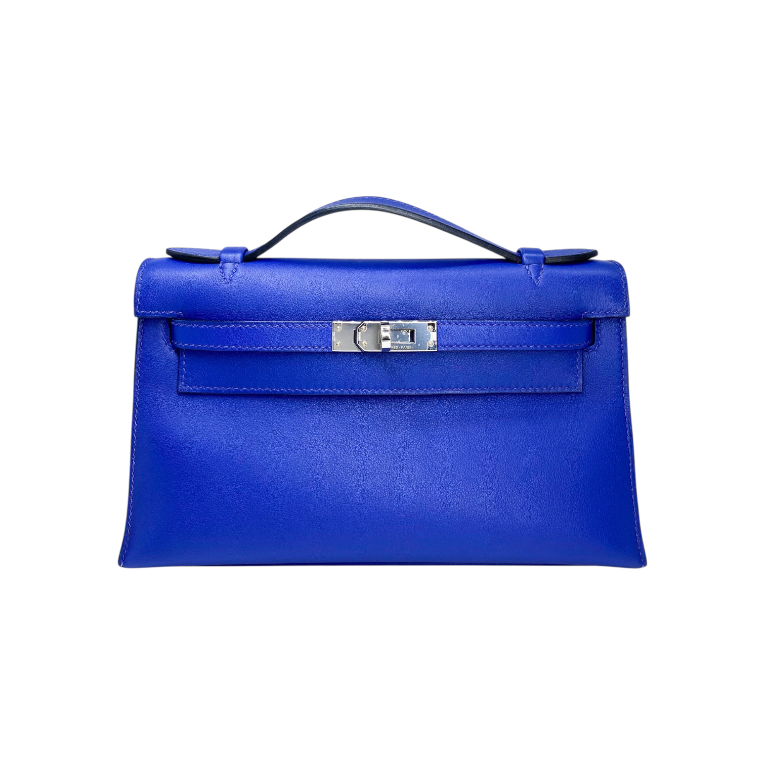 Hermes Kelly Pochette Bleu Electrique Swift Palladium Hardware