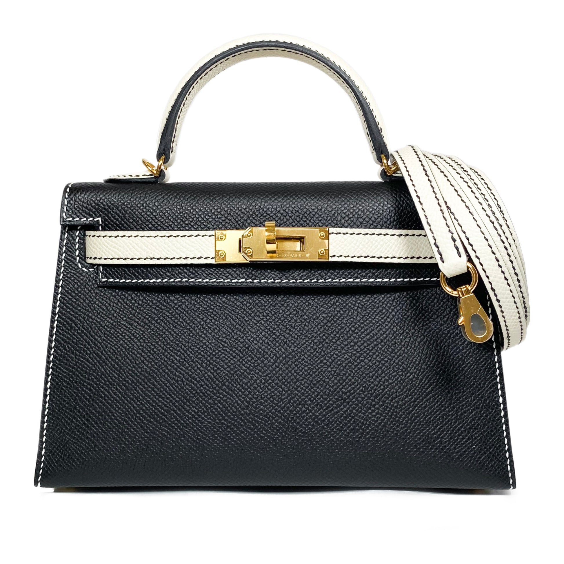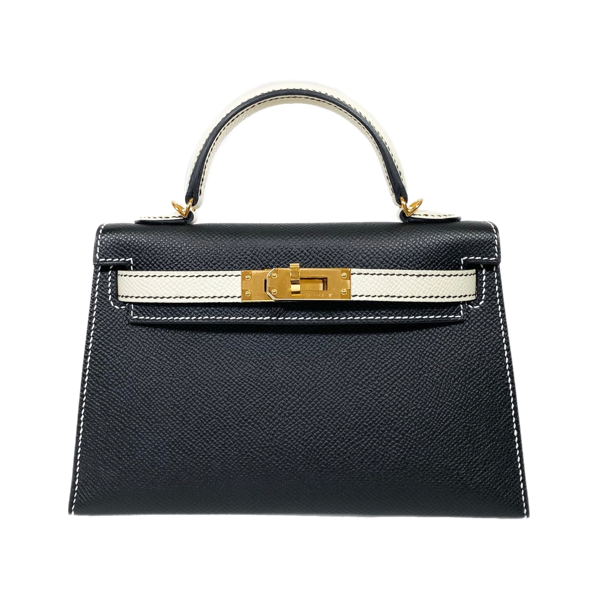 Hermes Special Order Mini Kelly 20 Noir and Craie Epsom Gold Hardware