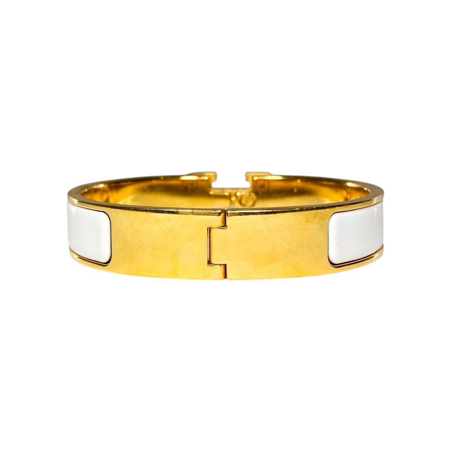This is an Hermes White Narrow Clic Clac H Bracelet in gold hardware. This stylish Clic Clac features White enamel and an H closure. This is an amazing accessory for any occasion!