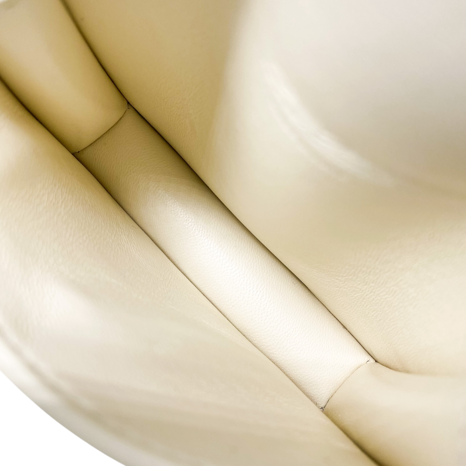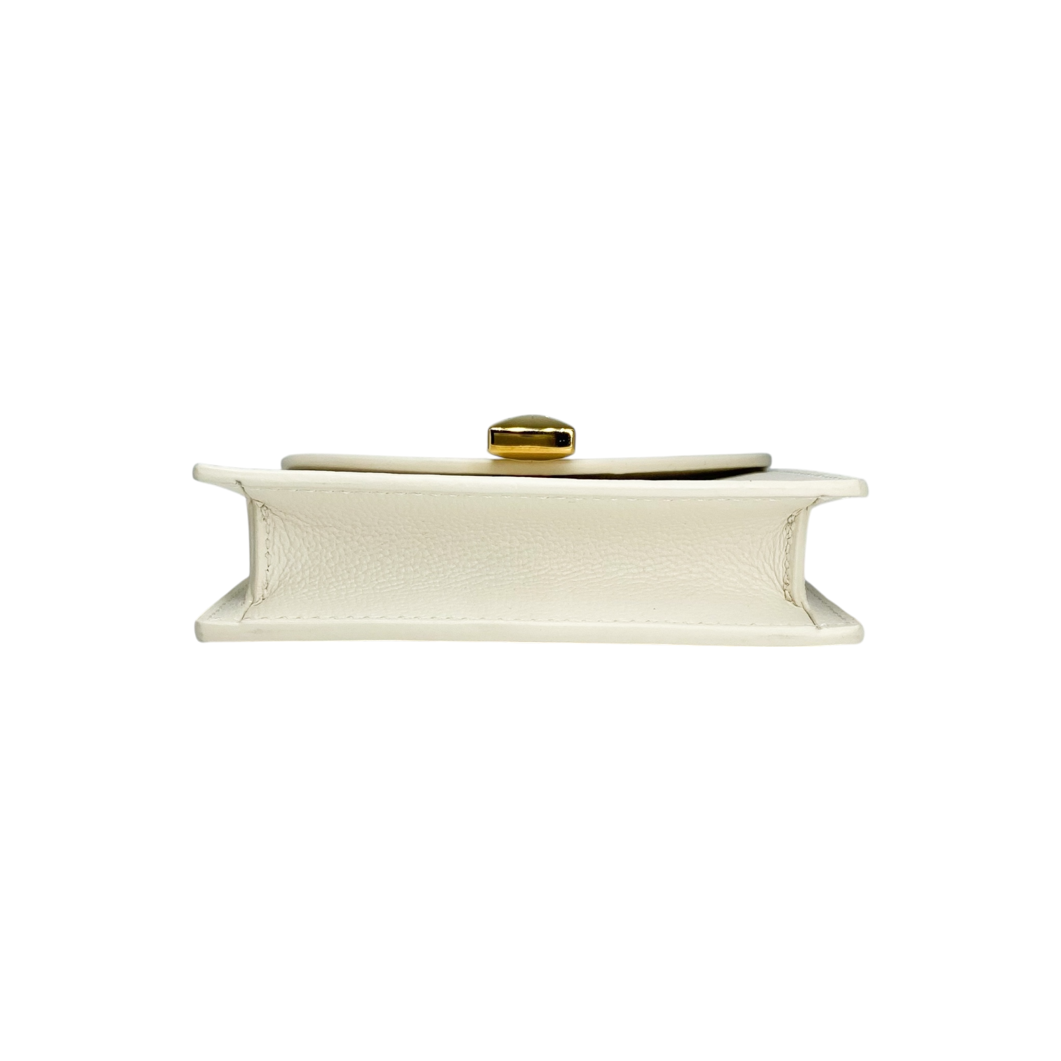 This is a Loro Piana Whisper White Extra Pochette Belt in calfskin leather with gold hardware. This wonderful accessory features a belt strap and a snap closure. The interior is lined in white leather. This amazing pochette belt is perfect to elevate your outfit!