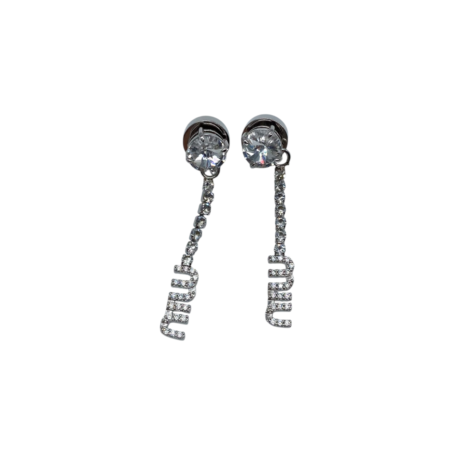 These are Miu Miu Crystal Drop Earrings (pierced). These earrings catch the light beautifully, adding a touch of sparkle to any look. Elegant yet playful, they’re perfect for dressing up an evening outfit or giving everyday style a hint of luxury.
