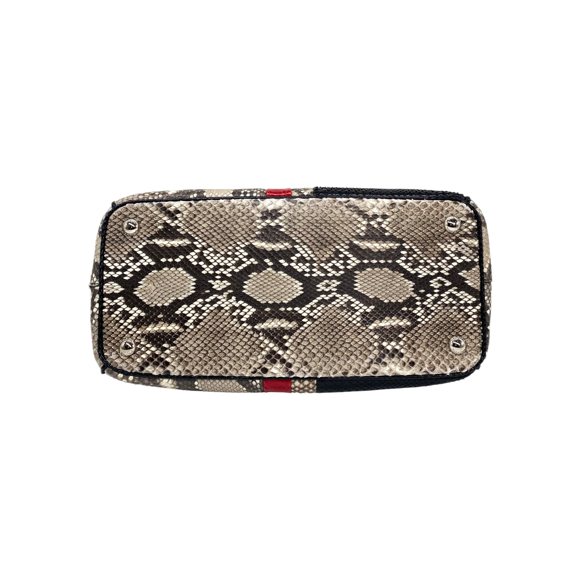This is a Prada Multicolor Top Handle Bag in python and crocodile with silver hardware. This wonderful handbag features a top handle and a push lock closure. The interior is lined in black leather and features patch pockets and a zipper pocket. This is a great addition to your handbag collection!