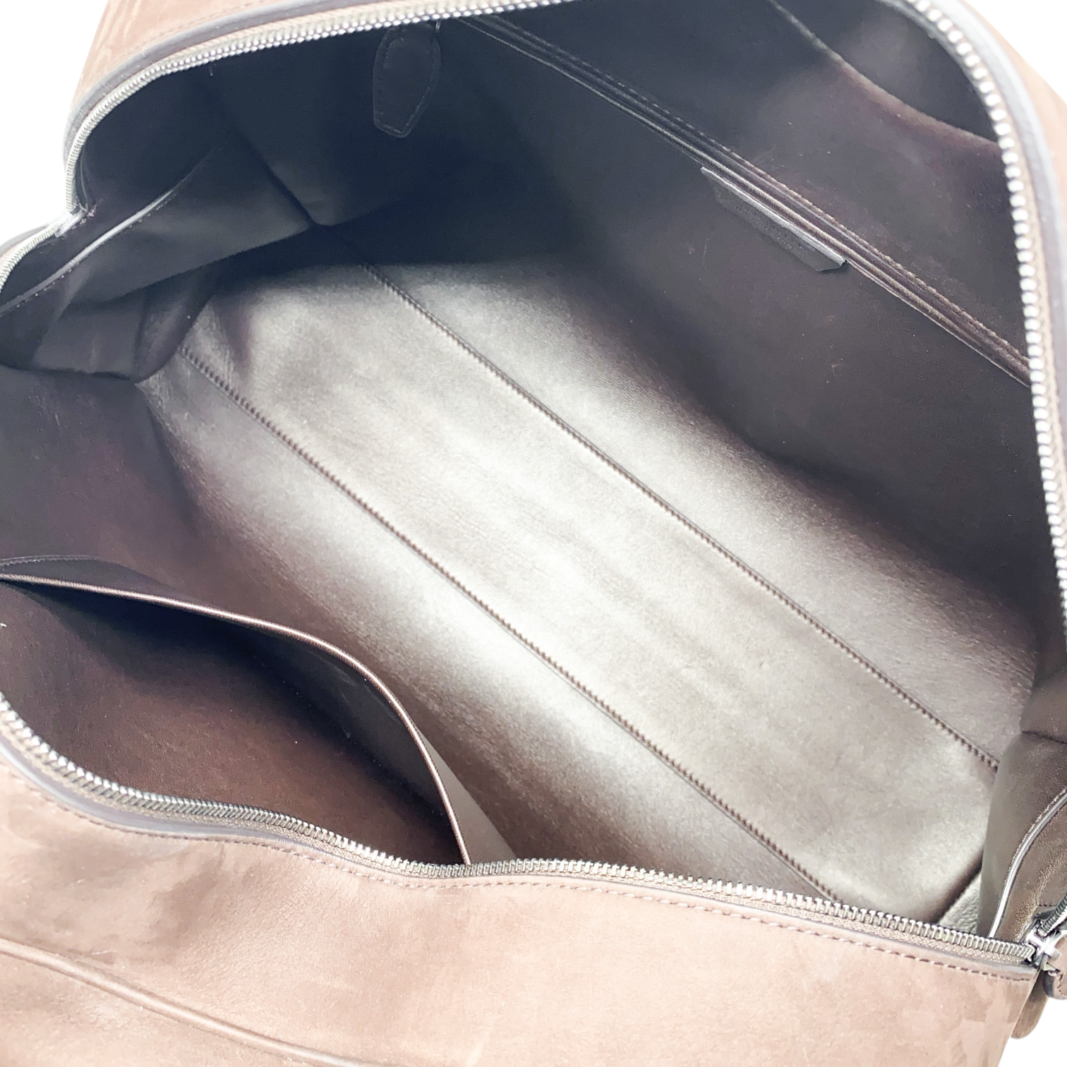 This bag is a The Row India 15.75" in beautiful nubuck suede. It comes in a rich chocolate brown, a timeless, on-trend color. Spacious yet refined, it’s perfect for life on the go. The leather-lined interior with two patch pockets keeps your essentials organized while exuding effortless sophistication.