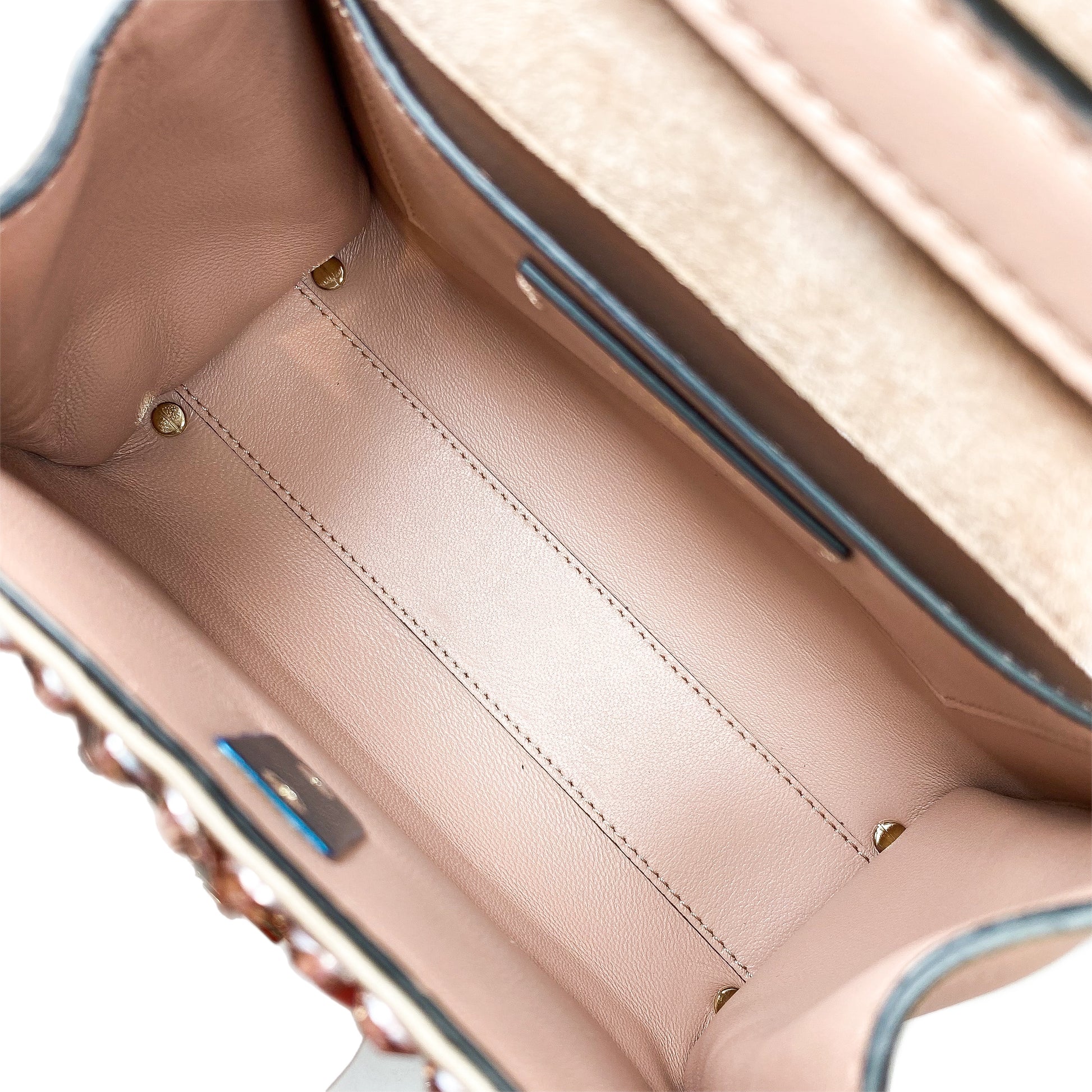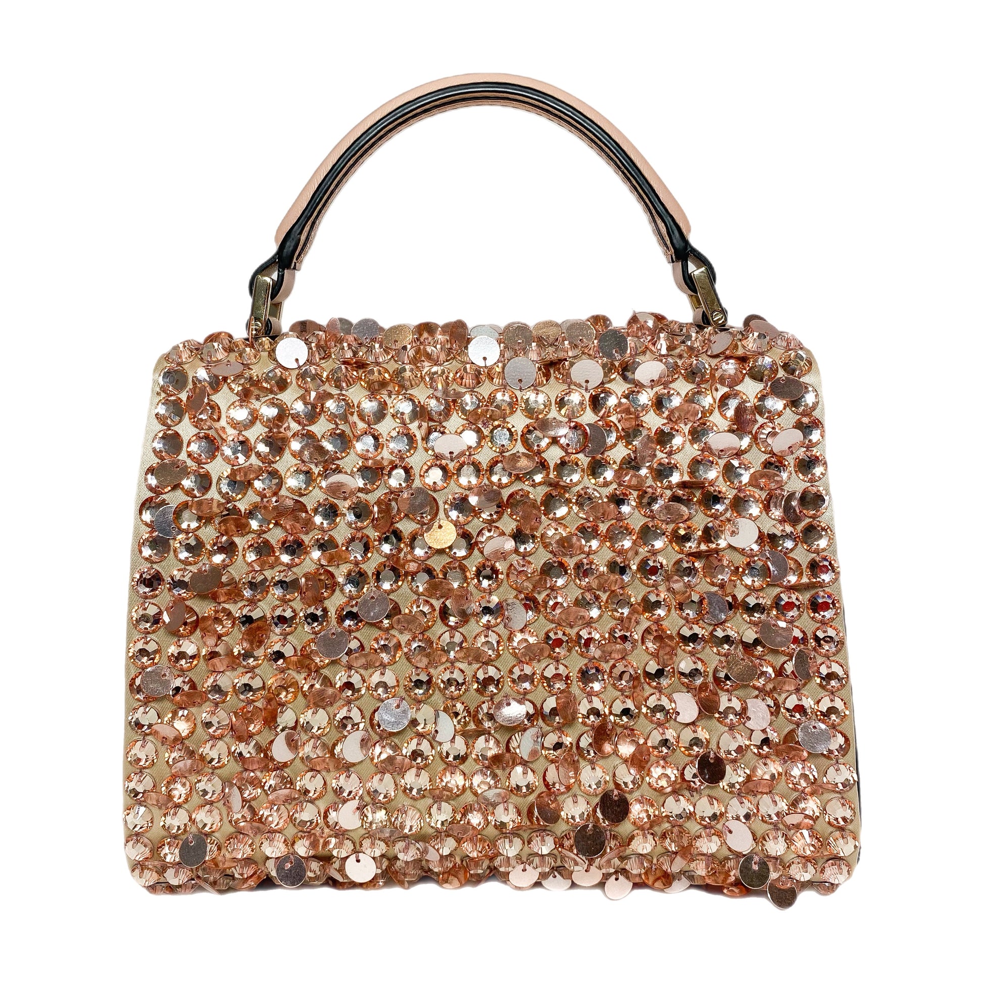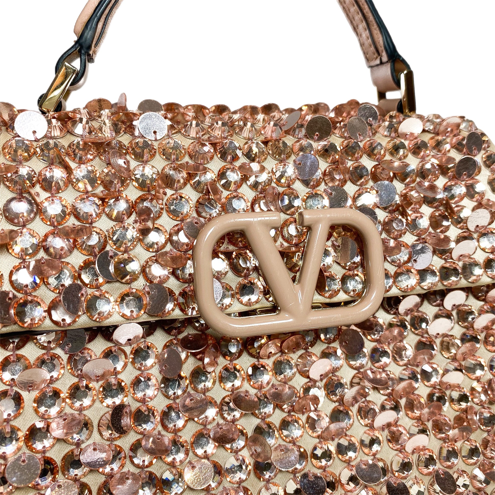 Valentino Peach Rose Mist Sequin Crystal Embroidered Mini Vsling Top Handle Bag