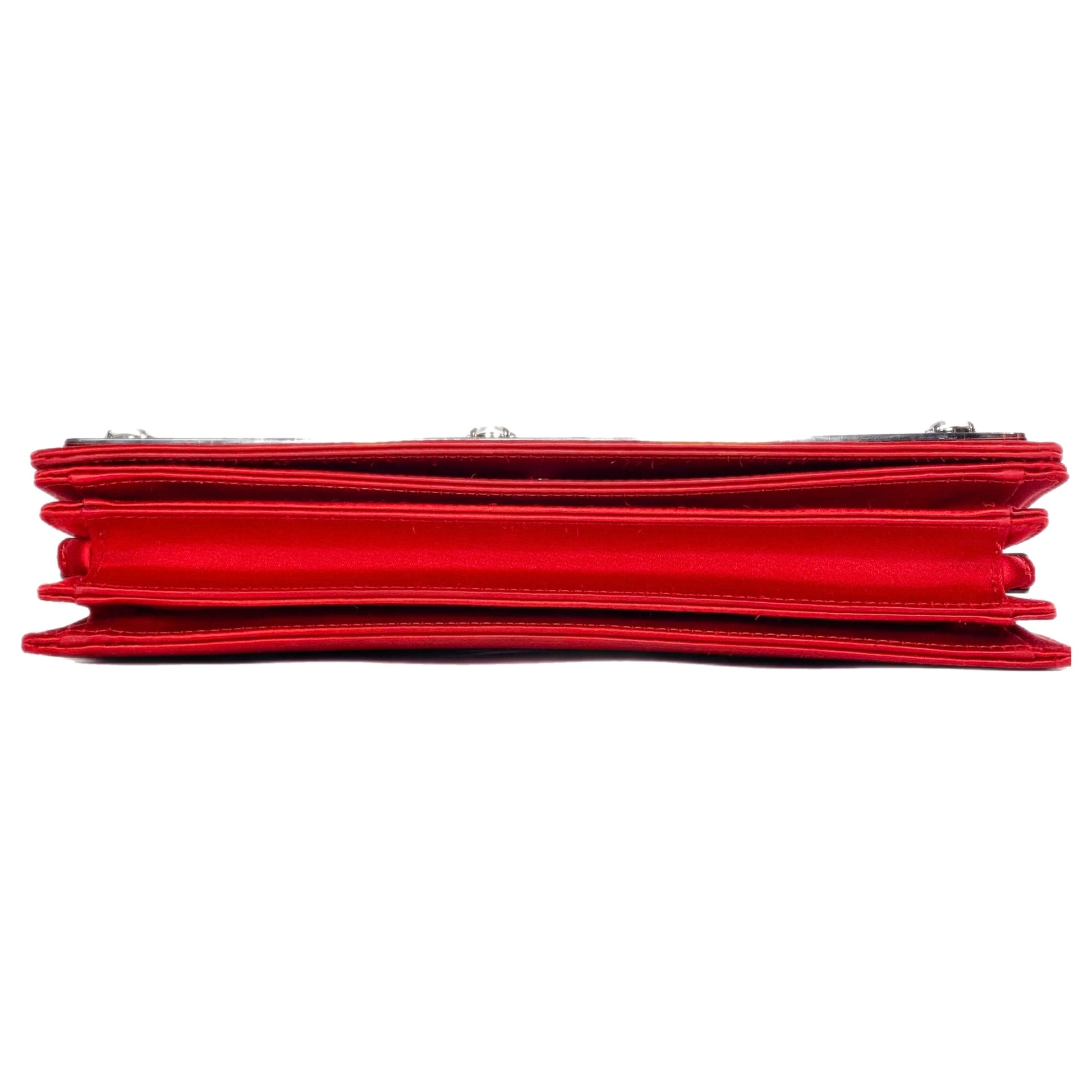 Valentino Red Satin Crystal Embellished Clutch with Chain