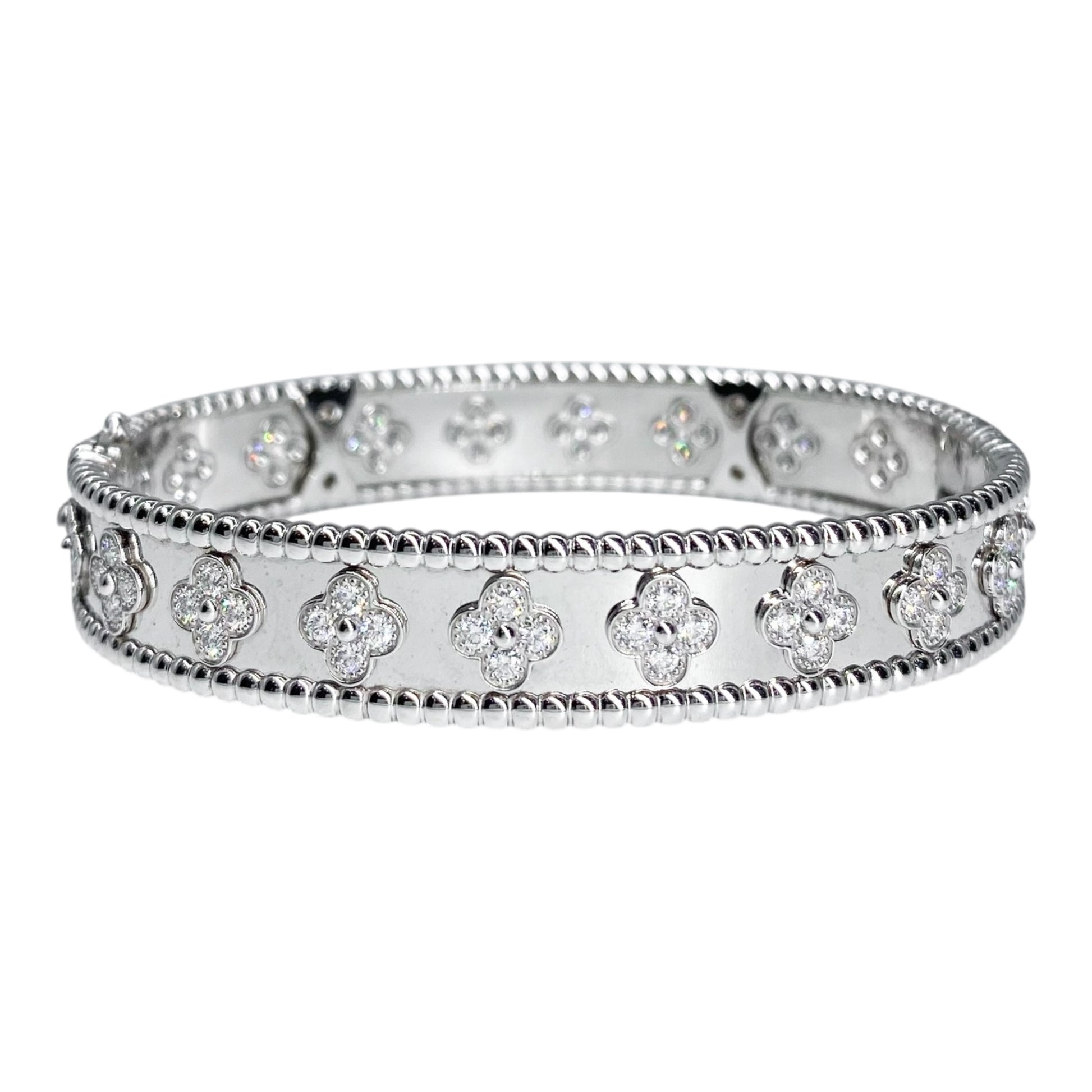 Van Cleef & Arpels 18k White Gold Diamond Perlee Clovers Bracelet